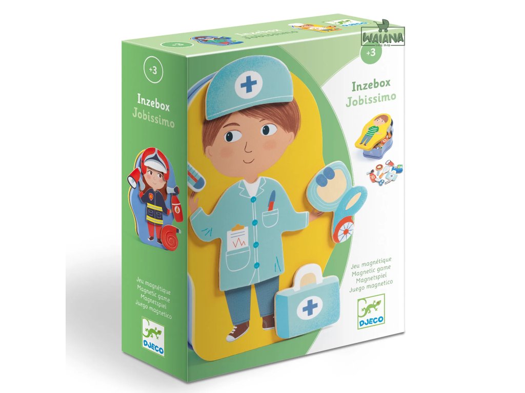Magnetická hra PovolaniaObjavte svet povolaní zábavnou formouS magnetickou hrou Povolania z kolekcie InZeBox sa deti naučia spoznávať rôzne profesie hravou a interaktívnou formou. Pomocou drevených magnetiek Jobissimo môžu skladať postavičky pracovníkov v typických uniformách a rozvíjať kreativitu, predstavivosť a jemnú motoriku.Keď sa hra skončí, magnetky jednoducho uložte do praktickej dózy
