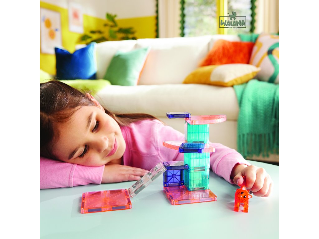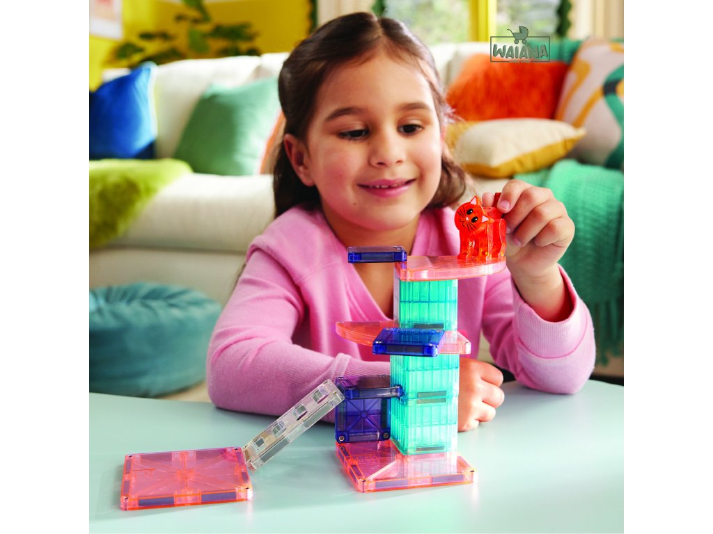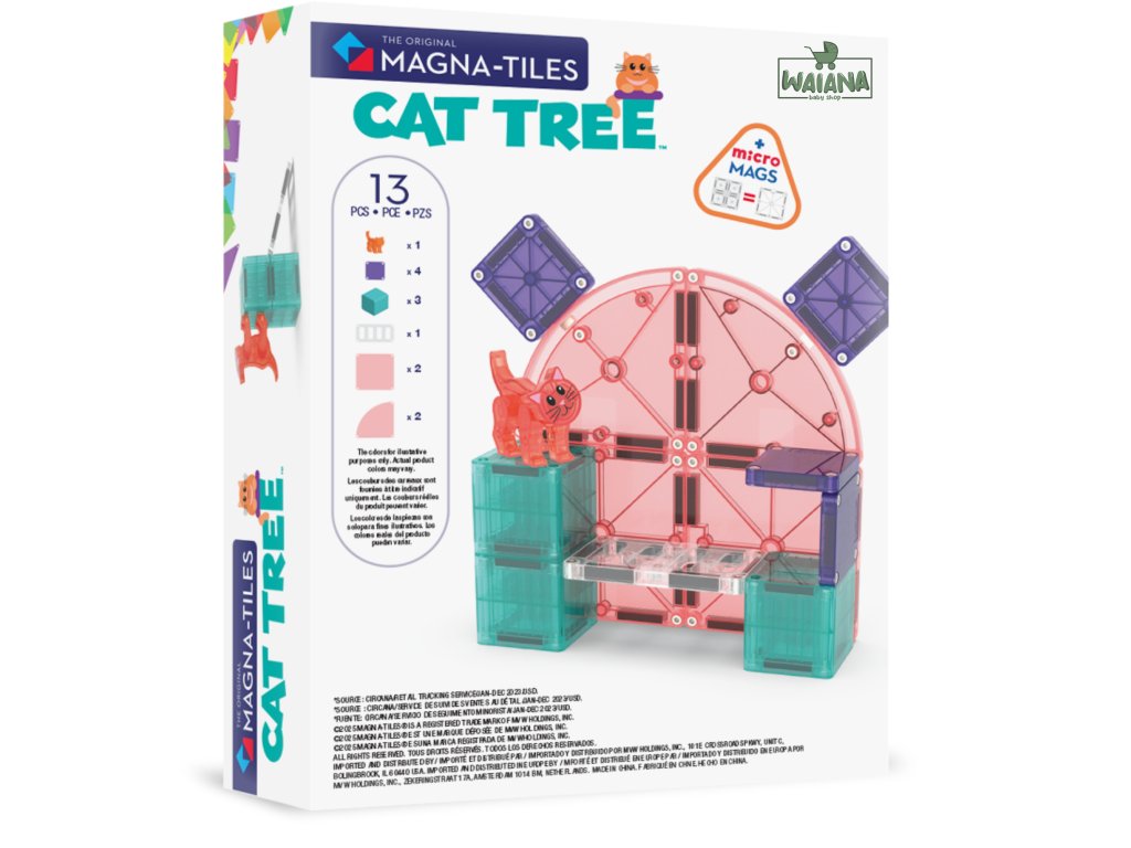 Magnetická stavebnica Cat Tree 13 dielovMačacia zábava vo veľkom štýle – šplhanie, hranie a mňaukanie vítané!Vitaj v svete, kde vládnu fúziky, tlapky a nekonečné lezenie! S MAGNA-TILES® Cat Tree si deti postavia dokonalý mačací raj – od útulného domčeka až po vysokánsku škrabaciu vežu. S pomocou microMAGS dielikov a roztomilej figúrky mačky sa každé hranie premení na dobrodružný deň v mačacom svete plnom fantázie.Čo robí Cat Tree takou výnimočnou?Jedinečná figúrka mačky – pripravená liezť, hrať sa a oddychovať vo svojom novom domčeku.Dieliky microMAGS a štvrťkruhové dlaždice – ideálne na tvorbu originálnych mačacích stavieb.Možnosť stavať veže, byty aj paláce – každá stavba je novým mačacím dobrodružstvom.Prečo si ju deti aj rodičia zamilujú?Podporuje kreativitu a samostatnosť – Stavanie bez návodu? Áno, prosím!Rozvíja jemnú motoriku, koordináciu ruka-oko a logiku – Učenie hrou nebolo nikdy zábavnejšie.Perfektný darček pre malých dobrodruhov – Odporúčané pre deti od 3 rokov.Bezpečné a odolné prevedenie – Sú vyrobené tak, aby vydržali nespočetné hodiny hrania a neobsahujú BPA, ftaláty ani latex.Navrhnuté pre zmysluplnú hru – Bez potreby asistencie dospelých, len čistá radosť.