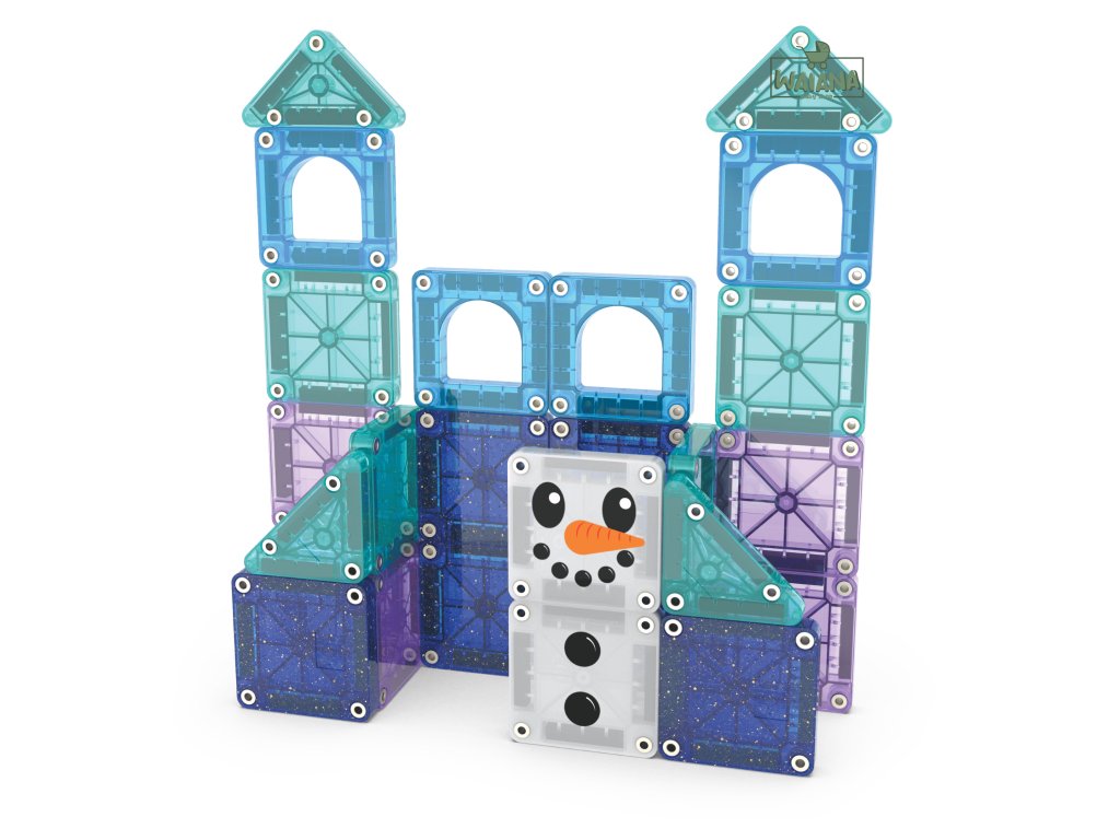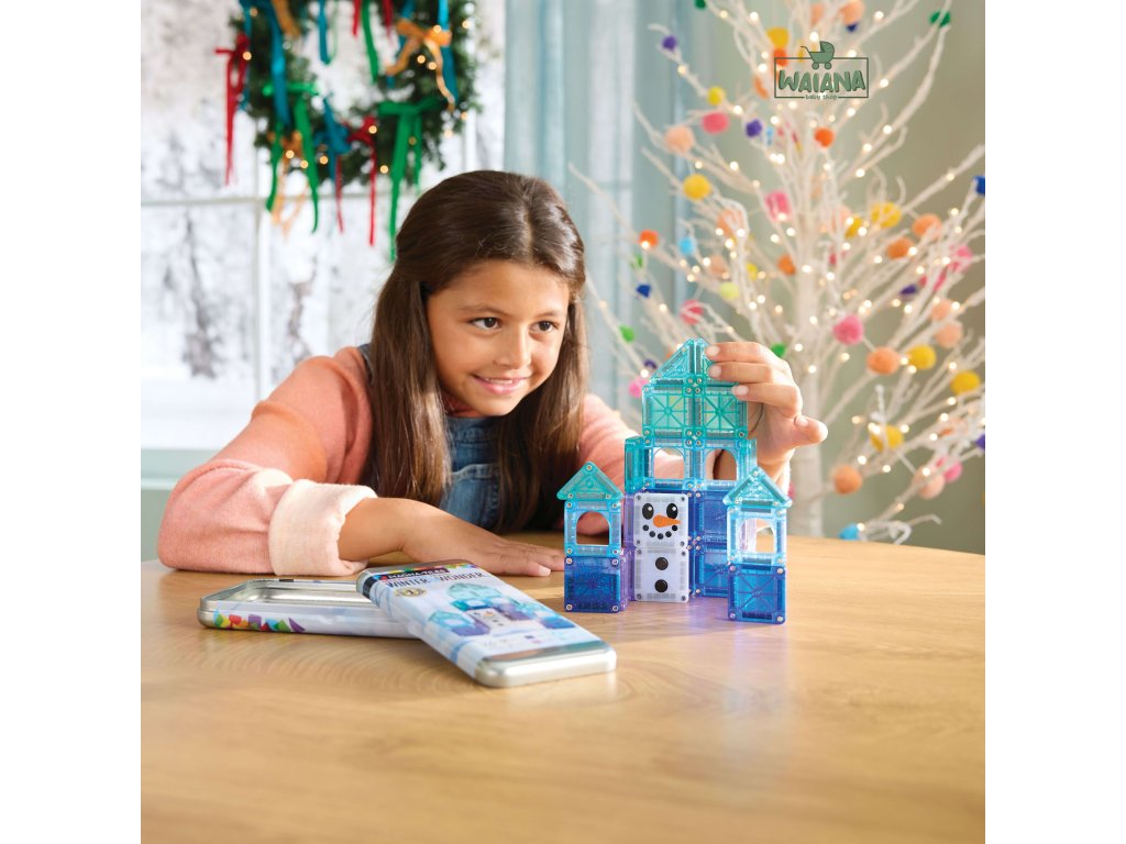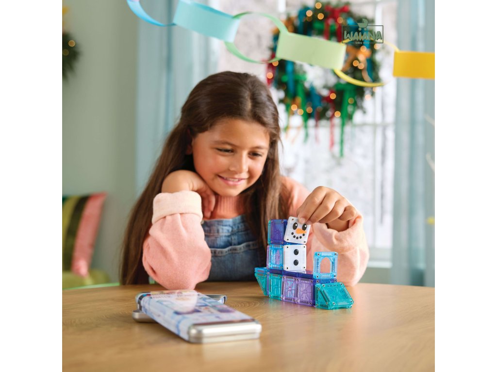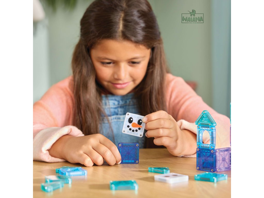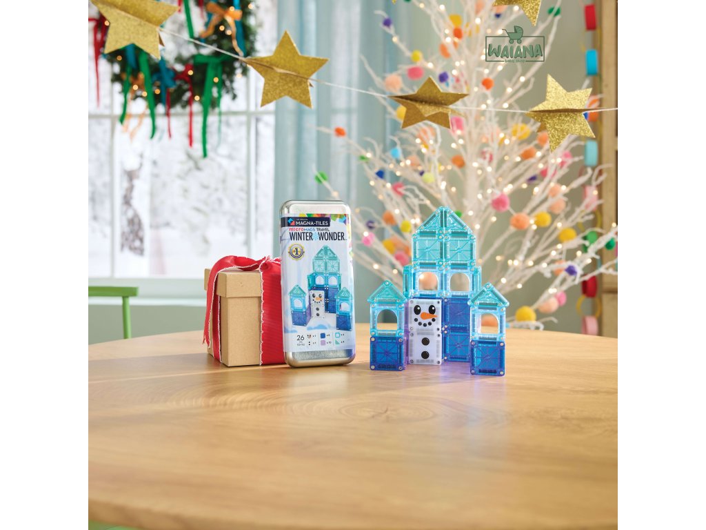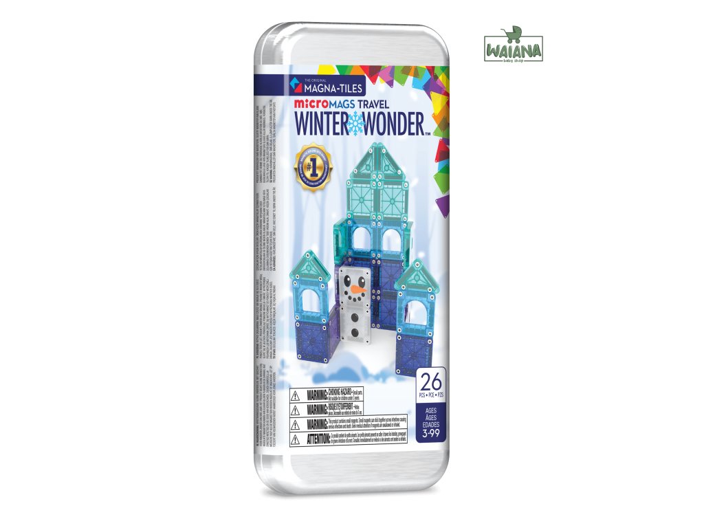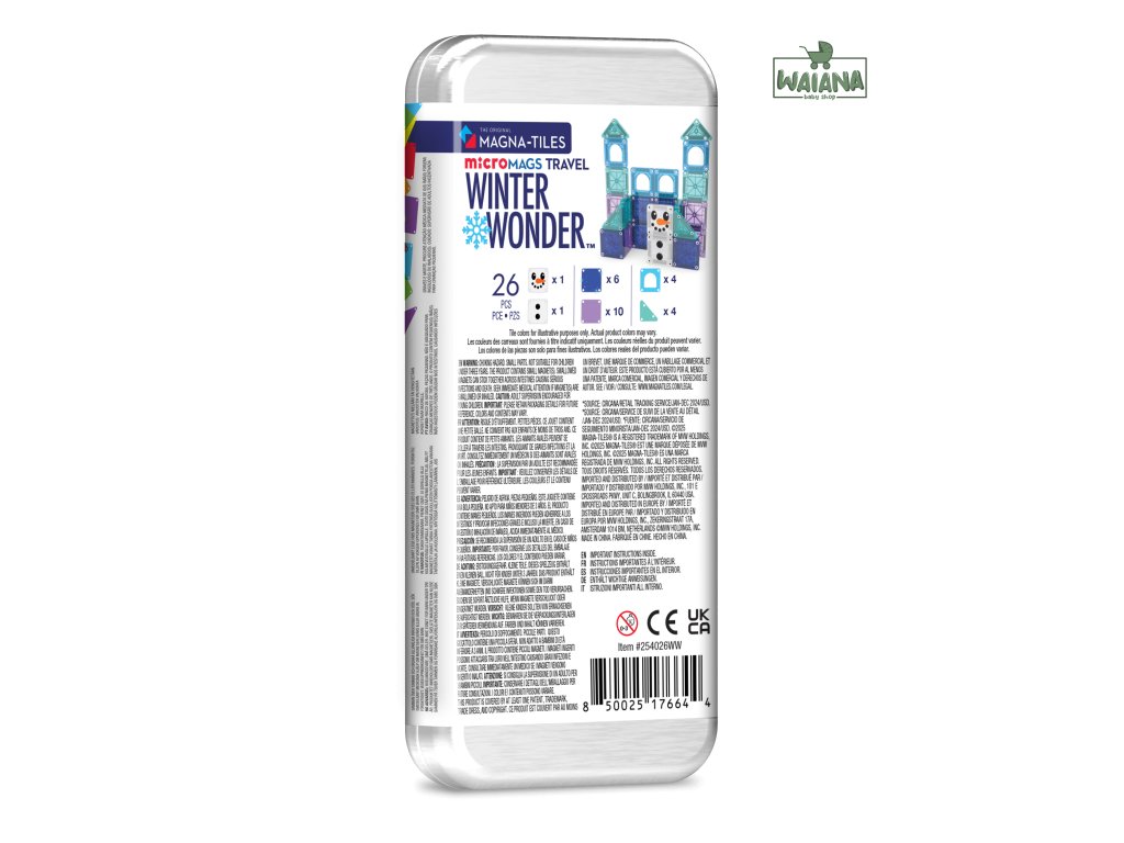 Magnetická stavebnica microMAGS Winter Wonderland Travel Set 26 dielovCestovná sada MAGNA-TILES na každý výletMagnetická stavebnica microMAGS Travel Set je ideálny spoločník na cesty. Obsahuje praktickosť a zábavu v jednom kompaktnom balení. Zimná tématika prinesie deťom do magnetickej hry záplavu zábavy a mrazivej mágie! Vďaka sviežim zimným farbám, ktoré sa trblietajú ako snehové vločky, táto sada umožňuje mladým staviteľom vytvárať ľadové hrady, postavičky a zasnežené scény.Čím je tento set špeciálny?V balené je 26 magnetických dielikov, ktoré sú o 75 % menšie ako tradičné MAGNA-TILES, čo umožňuje ešte detailnejšie stavby.Kovový plechový obal poskytuje pohodlné skladovanie, vďaka ktorému je tento set dokonalým spoločníkom na rodinné výlety - zmestí sa do batohu, kabelky alebo cestovnej tašky, takže deti môžu mať svoje obľúbené stavebné diely vždy so sebou.Magnety microMAGS sú plne kompatibilné so všetkými ostatnými stavebnicami MAGNA-TILES, čo z nich robí skvelý doplnok k existujúcim sadám.Zmysluplná stavebnica pre malých staviteľovStavebnica je nielen praktická, ale aj vysoko kvalitná a bezpečná. Dieliky sú vyrobené z potravinárskeho, netoxického plastu, ktorý neobsahuje BPA, ftaláty ani latex. Silné magnety a pevná konštrukcia zabezpečujú dlhú životnosť a nekonečné hodiny tvorivej zábavy. Táto stavebnica podporuje rozvoj jemných motorických zručností, koordinácie ruka-oko a kreativity, čo z nej robí ideálny darček pre deti vo veku už od 3 rokov.Sada obsahuje 26 magnetických dielikov microMAGS:4x pravý trojuholník,4x rovnoramenný trojuholník,6x rovnostranný trojuholník,12x štvorec.