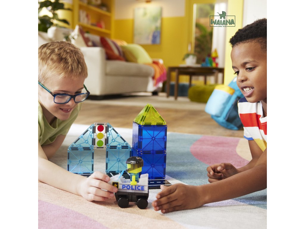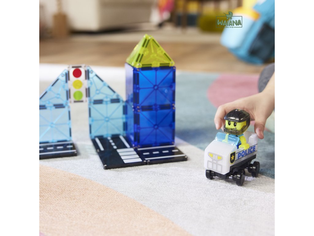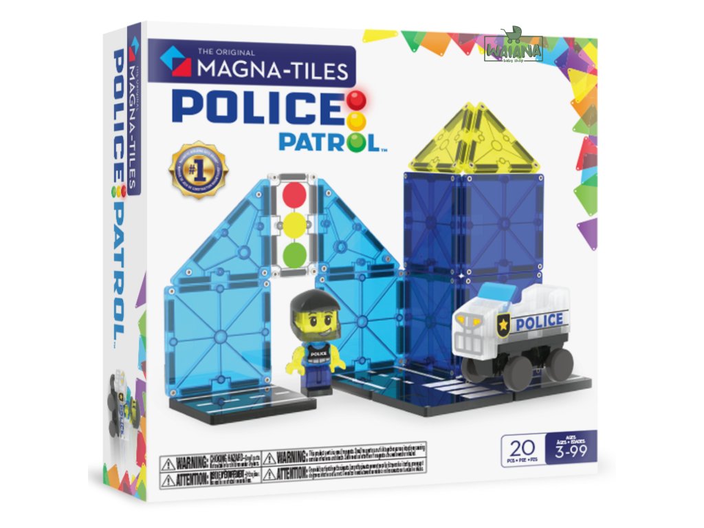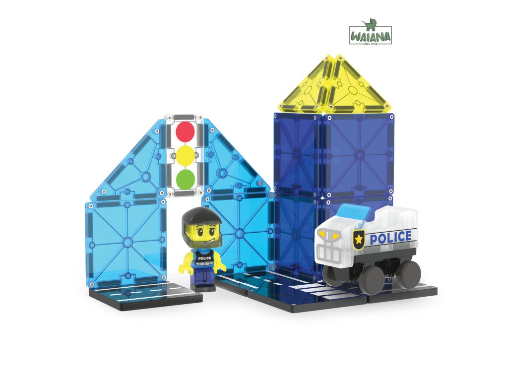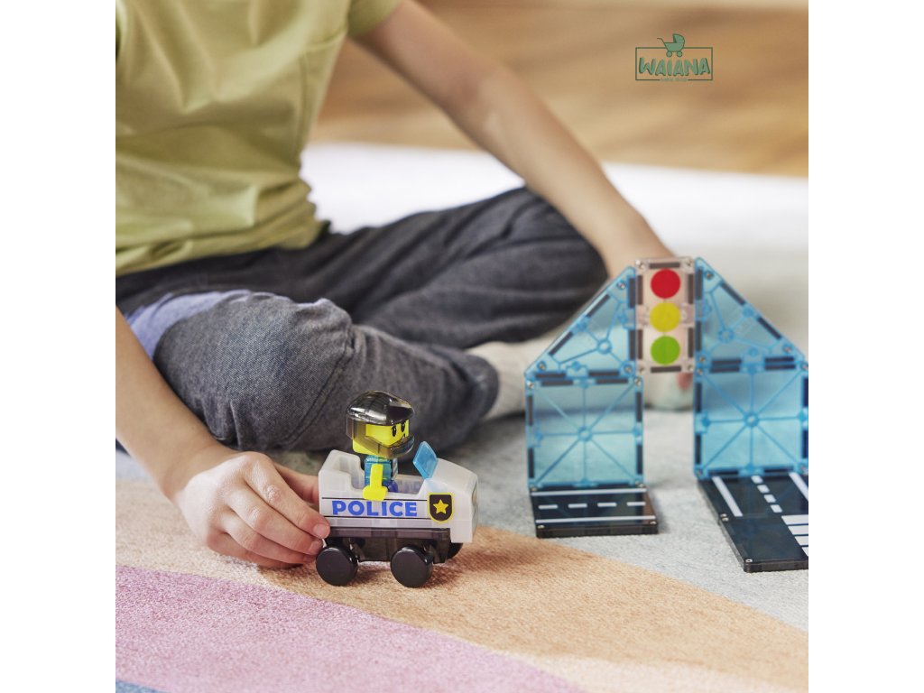 Magnetická stavebnica Police Patrol 20 dielovHliadkuj, stavaj a zachraňuj – tvoja misia začína práve teraz!Staň sa strážcom svojho magnetického sveta! S touto stavebnicou Magna-Tiles® Police Patrol sa každé dieťa zmení na skutočného ochráncu mesta – postaví vlastné vozidlo, vymyslí akčné príbehy a bude hliadkovať ulicami plnými dobrodružstiev. Fantázia tu nepozná hranice!Čo robí túto stavebnicu výnimočnou?Univerzálne vozidlo – umožňuje navrhovať rôzne typy vozidiel, od áut po skateboardy.Mix & Match figúrka policajta – vymieňateľné časti pre nekonečné kombinácie a zábavu.Dlaždica so semaforom microMAGS – nová úroveň hry plná pravidiel a poriadku.Plne kompatibilná s ostatnými sadami Magna-Tiles® – Viac dielov = viac možností.Prečo si ju deti aj rodičia zamilujú?Podporuje kreativitu a samostatnosť – Stavanie bez návodu? Áno, prosím!Rozvíja jemnú motoriku, koordináciu ruka-oko a logiku – Učenie hrou nebolo nikdy zábavnejšie.Perfektný darček pre malých dobrodruhov – Odporúčané pre deti od 3 rokov.Bezpečné a odolné prevedenie – Sú vyrobené tak, aby vydržali nespočetné hodiny hrania a neobsahujú BPA, ftaláty ani latex.Navrhnuté pre zmysluplnú hru – Bez potreby asistencie dospelých, len čistá radosť.