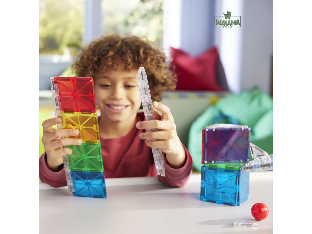 Magnetická stavebnica Rail Racers 33 dielovPostav trať, spusti guličku a sleduj, ako sa rozbehne poriadna jazda!Sada MAGNA-TILES® Rail Racers – 33 dielov je ako štartovacia línia pre všetkých malých pretekárov. Vďaka priehľadným koľajniciam, ktoré sa jednoducho zacvaknú bez spojok, si deti vytvoria vlastnú rýchlostnú trať plnú zákrut, mostov a skokov. Stačí pustiť guličku a sledovať, ako sa rozbieha zábava a zároveň aj učenie!Prečo je táto sada jedinečná?6 priehľadných koľajníc s patentovaným dizajnom – stabilné, pevné a ľahko spojiteľné.Kompaktný formát – ideálne pre menšie priestory, rýchle stavanie alebo ako doplnok k väčšej sade.Navrhnuté skvelým otcom a fanúšikom Magna-Tiles® – inšpirované deťmi – kombinácia praktickosti a hravého dizajnu.Nekonečné možnosti stavania – mosty, rampy, dráhy, veže a ďalšie konštrukcie.Kompatibilná so všetkými sadami MAGNA-TILES® Prečo si ju deti aj rodičia zamilujú?Podporuje kreativitu a samostatnosť – Stavanie bez návodu? Áno, prosím!Rozvíja jemnú motoriku, koordináciu ruka-oko a logiku – Učenie hrou nebolo nikdy zábavnejšie.Perfektný darček pre malých dobrodruhov – Odporúčané pre deti od 3 rokov.Bezpečné a odolné prevedenie – Sú vyrobené tak, aby vydržali nespočetné hodiny hrania a neobsahujú BPA, ftaláty ani latex.Zmysluplná hra – Bez potreby asistencie dospelých, len čistá radosť.