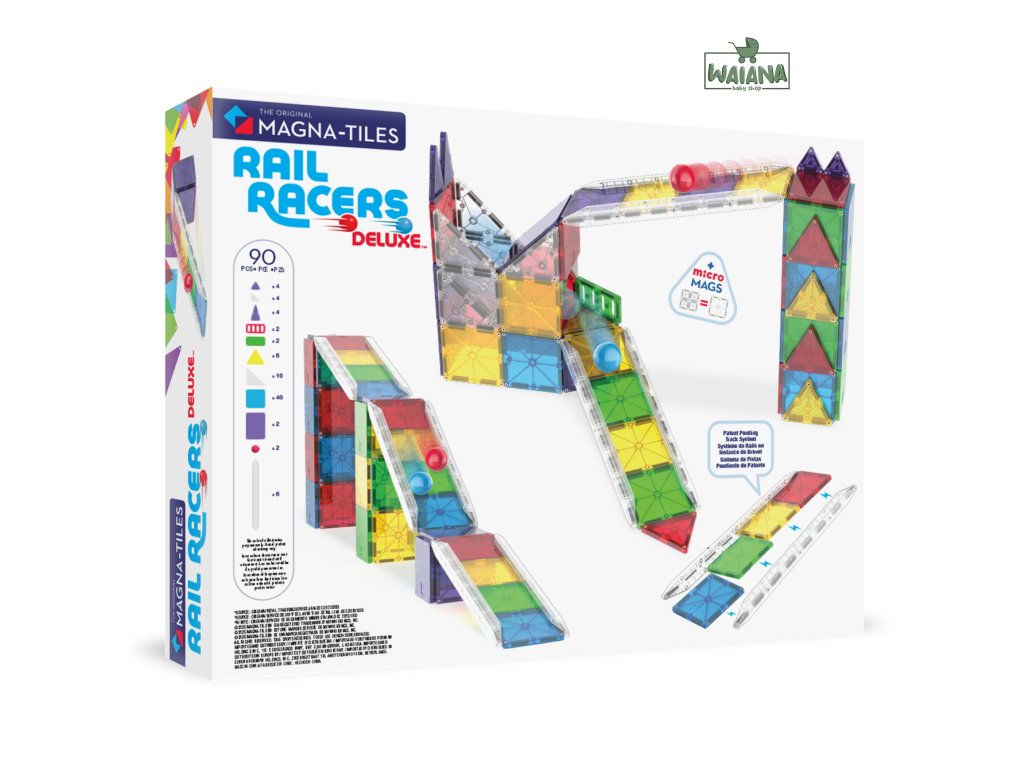 Magnetická stavebnica Rail Racers Deluxe 90 dielovPripraviť trať, naštartovať guličky a… 3, 2, 1… štart!Postav si vlastnú pretekársku trať snov s MAGNA-TILES® Rail Racers Deluxe! Táto 90-dielna sada je nabitá akciou, rýchlosťou a zábavou pre malých aj veľkých konštruktérov. Vďaka špeciálnym koľajniciam, rampám a guličkám sa hra mení na dynamické dobrodružstvo plné fyziky a fantázie.Prečo je táto sada jedinečná?6 inovatívnych koľajníc s patentovaným dizajnom – stačí pár kliknutí a trať je pripravená.Dieliky microMAGS™ a priehľadné prvky – jednoduché skladanie bez spojok, len s magnetickou mágiou.Navrhnuté skvelým otcom a fanúšikom Magna-Tiles® – inšpirované deťmi – kombinácia praktickosti a hravého dizajnu.Nekonečné možnosti stavania – mosty, rampy, dráhy, veže a ďalšie konštrukcie.Kompatibilná so všetkými sadami MAGNA-TILES® Prečo si ju deti aj rodičia zamilujú?Podporuje kreativitu a samostatnosť – Stavanie bez návodu? Áno, prosím!Rozvíja jemnú motoriku, koordináciu ruka-oko a logiku – Učenie hrou nebolo nikdy zábavnejšie.Perfektný darček pre malých dobrodruhov – Odporúčané pre deti od 3 rokov.Bezpečné a odolné prevedenie – Sú vyrobené tak, aby vydržali nespočetné hodiny hrania a neobsahujú BPA, ftaláty ani latex.Zmysluplná hra – Bez potreby asistencie dospelých, len čistá radosť.