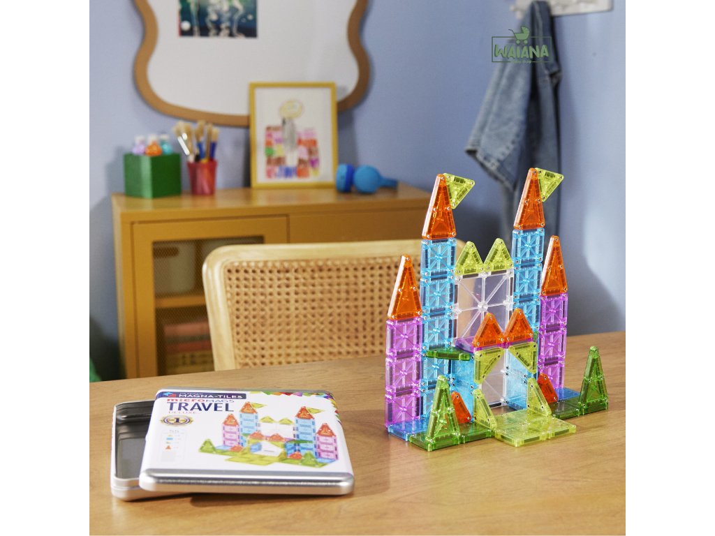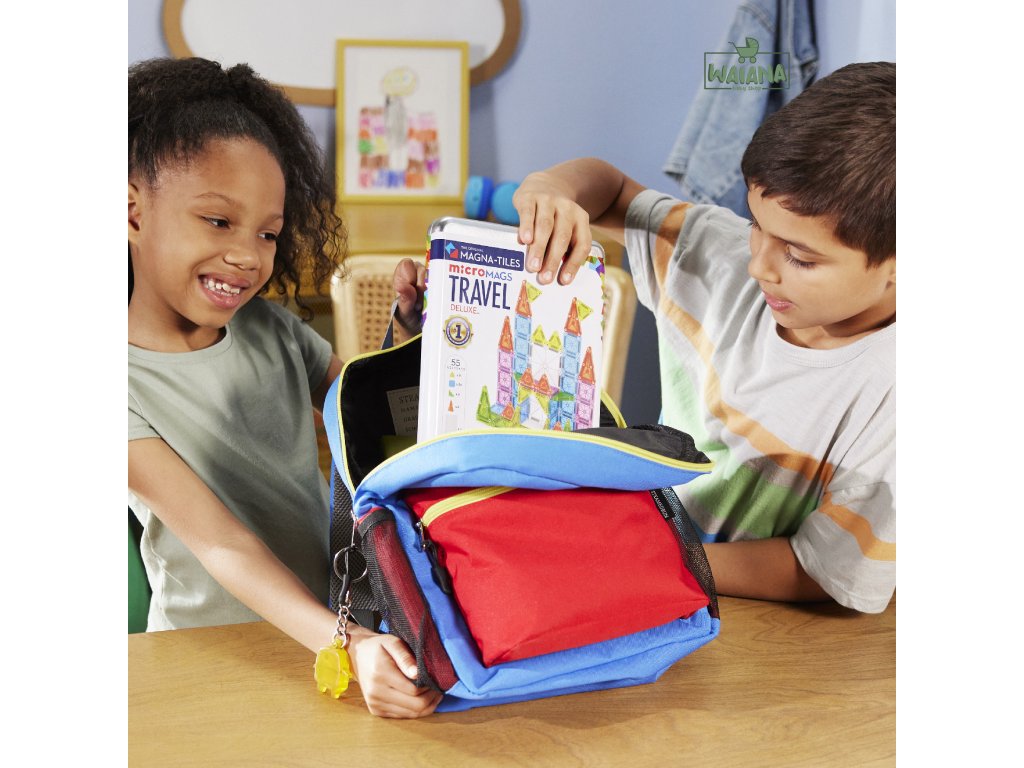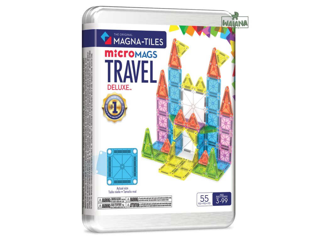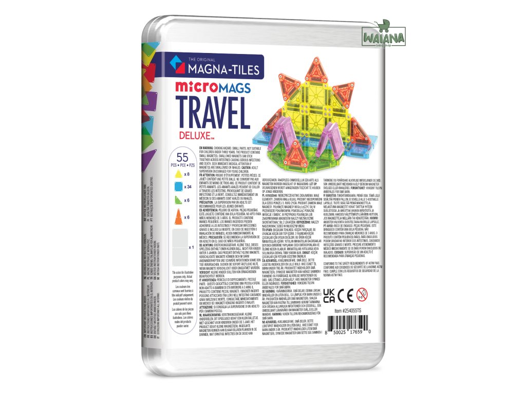 Magnetická stavebnica Travel Set Deluxe 55 dielovZbaľ si zábavu do tašky a postav čokoľvek – kdekoľvek!Či už ste na ceste autom, v lietadle, v reštaurácii alebo na pikniku – s MAGNA-TILES® Travel Set Deluxe sa dobrodružstvo nikdy nekončí. Táto 55-dielna prenosná stavebnica s miniatúrnymi dielikmi microMAGS je navrhnutá pre veľkú zábavu v malom formáte. S praktickým plechovým puzdrom sa môžu deti hrať všade, kde ich napadne!Čo robí túto cestovnú sadu výnimočnou?Mini formát, maxi možnosti – dieliky microMAGS sú o 75 % menšie a ideálne na cesty.55 dielikov + plechové puzdro – všetko pekne pohromade, vždy pripravené na hranie.Navrhnuté na cesty autom, vlakom či lietadlom – bez obmedzení, bez nudy.Kompatibilná so všetkými sadami MAGNA-TILES® Prečo si ju deti aj rodičia zamilujú?Podporuje kreativitu a samostatnosť – Stavanie bez návodu? Áno, prosím!Rozvíja jemnú motoriku, koordináciu ruka-oko a logiku – Učenie hrou nebolo nikdy zábavnejšie.Perfektný darček pre malých dobrodruhov – Odporúčané pre deti od 3 rokov.Bezpečné a odolné prevedenie – Sú vyrobené tak, aby vydržali nespočetné hodiny hrania a neobsahujú BPA, ftaláty ani latex.Zmysluplná hra – Bez potreby asistencie dospelých, len čistá radosť.