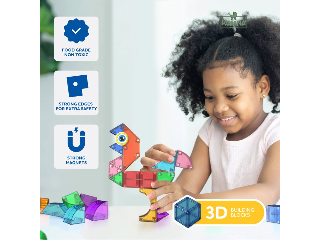 Sada je vhodná pre deti od 3 rokov a poskytuje hodiny zábavy pri tvorbe rôznych stavieb, geometrických tvarov alebo vlastných magnetických výtvorov.