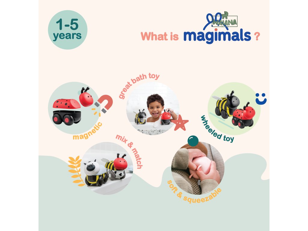 Magnetické zvieratká Magimals Wheely Lienka / VčelaObjavte kúzlo pohyblivých hračiek s magnetickými zvieratkami Magimals Wheely Lienka a Včela!