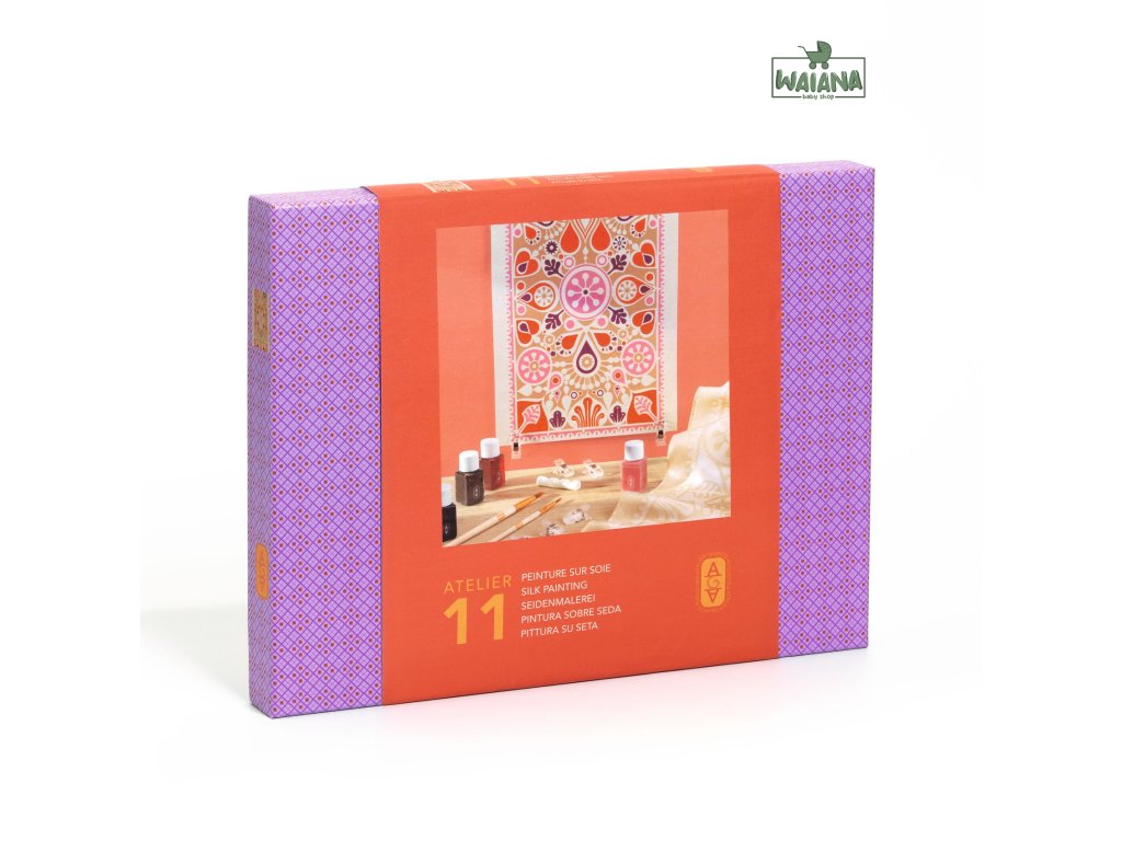 Maľovanie na hodváb Ateliér 11 Vytvor elegantnú hodvábnu šatku: maľovanie na hodváb s hotovými kontúramiMaľovanie na hodváb Atelier 11 je veľká kreatívna sada, ktorá ťa krok za krokom prevedie technikou maľovania na hodváb. Súčasťou je hodvábna šatka pripravená na maľovanie s prednanesenými kontúrami (guttou), vďaka čomu farby nepretečú mimo vzor a výsledok pôsobí čisto a profesionálne.Farby na hodváb sa nanášajú štetcami a krásne sa rozlievajú do plôch, takže tvorenie je uvoľňujúce a zároveň veľmi efektné. Hotovú šatku môžeš nosiť, darovať alebo si ju vystaviť ako vlastné umelecké dielo.Pre koho je vhodná: odporúčaný vek: 15 – 99 rokovHlavné benefity hodvábna šatka s prednanesenými kontúrami – farby zostávajú v obrázku tvorenie, ktoré podporuje trpezlivosť, sústredenie a cit pre farby výsledkom je nositeľný doplnok – vlastnoručne maľovaná šatka súčasťou je videonávod – jednoduché vedenie krok za krokomAko tvorenie prebieha šatku upevníš pomocou sponiek, aby sa s ňou pohodlne pracovalo štetcom nanášaš farby do jednotlivých plôch podľa kontúr nechá sa zaschnúť a šatka je pripravená na nosenieObsah balenia 1 hodvábna šatka pripravená na maľovanie (cca 130 × 34 cm) s prednanesenými kontúrami 4 farby na hodváb (4 × 30 ml) 2 štetce + držiak na štetce 20 sponiek na upevnenie látky šablóna (pomôcka k postupu) + návod a karta s QR kódom k videu