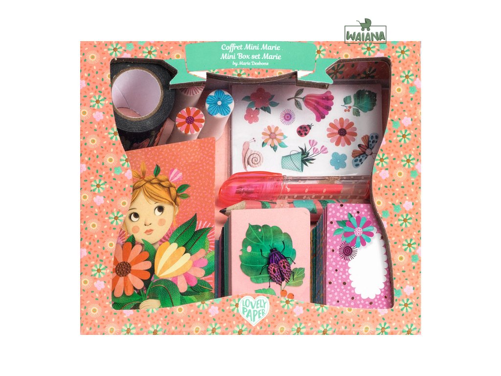 Marie: Mini korešpondenčná a písacia sadaRoztomilá sada na písanie listov pre detiMarie – mini korespondenčná a písacia sada je krásna a praktická papierenská sada z kolekcie Lovely Paper, ktorá ponúka všetko potrebné pre písanie listov, pozdravov alebo krátkych správ.Prečo si vybrať sadu od Djecokompletná písacia sada pre listy a správyilustrované papiere a obálky pre originálne písaniedekoratívne samolepky na ozdobeniekrásny dizajn z kolekcie Lovely PaperObsah balenia3 mini zápisníky (10 čistých strán)5 mini kariet (rozmery: 4 x 6 cm)5 mini obálok4 hárky samolepiek (2 dizajny x 2 ks)kotúč ozdobnej lepiacej páskymini gélové peromini ceruzka3 mini gumy na gumovanie
