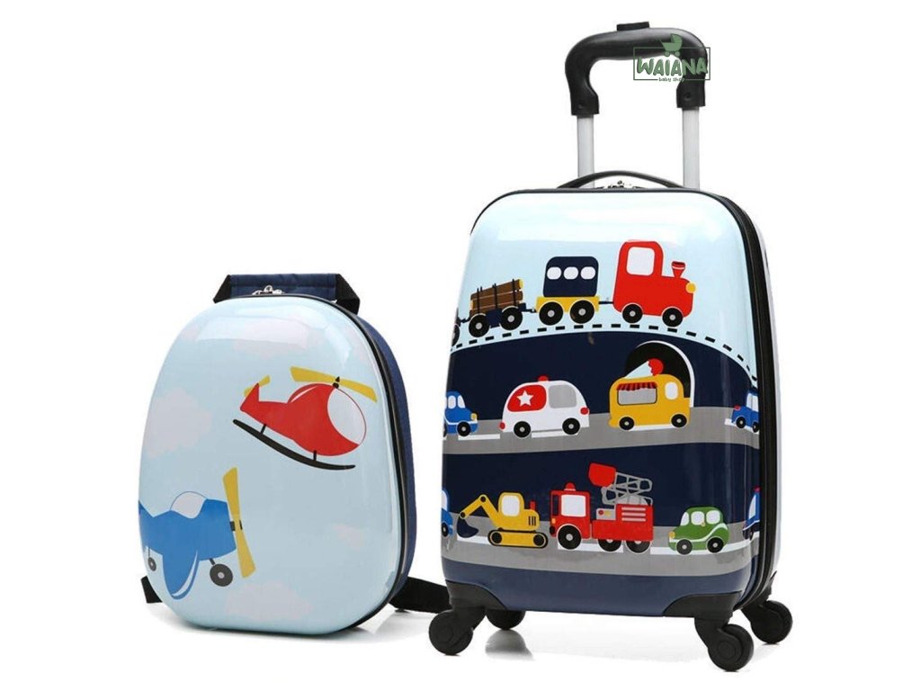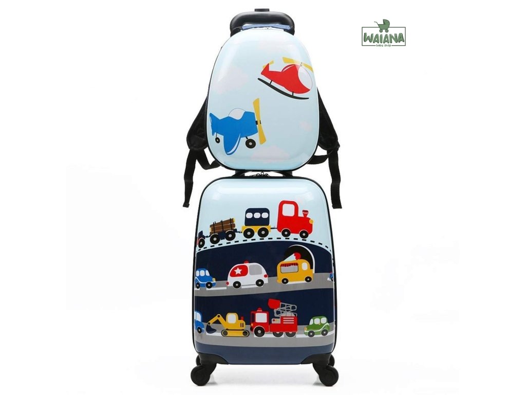 Nechajte svoje dieťa, aby si zbalilo svoje veci a vydajte sa na výlet plný zážitkov s touto očarujúcou a priestrannou súpravou kufra a ruksaku. Táto farebná súprava s motívom rôznych dopravných prostriedkov určite osloví každého malého cestovateľa a je ideálna na dovolenky aj kratšie výlety.