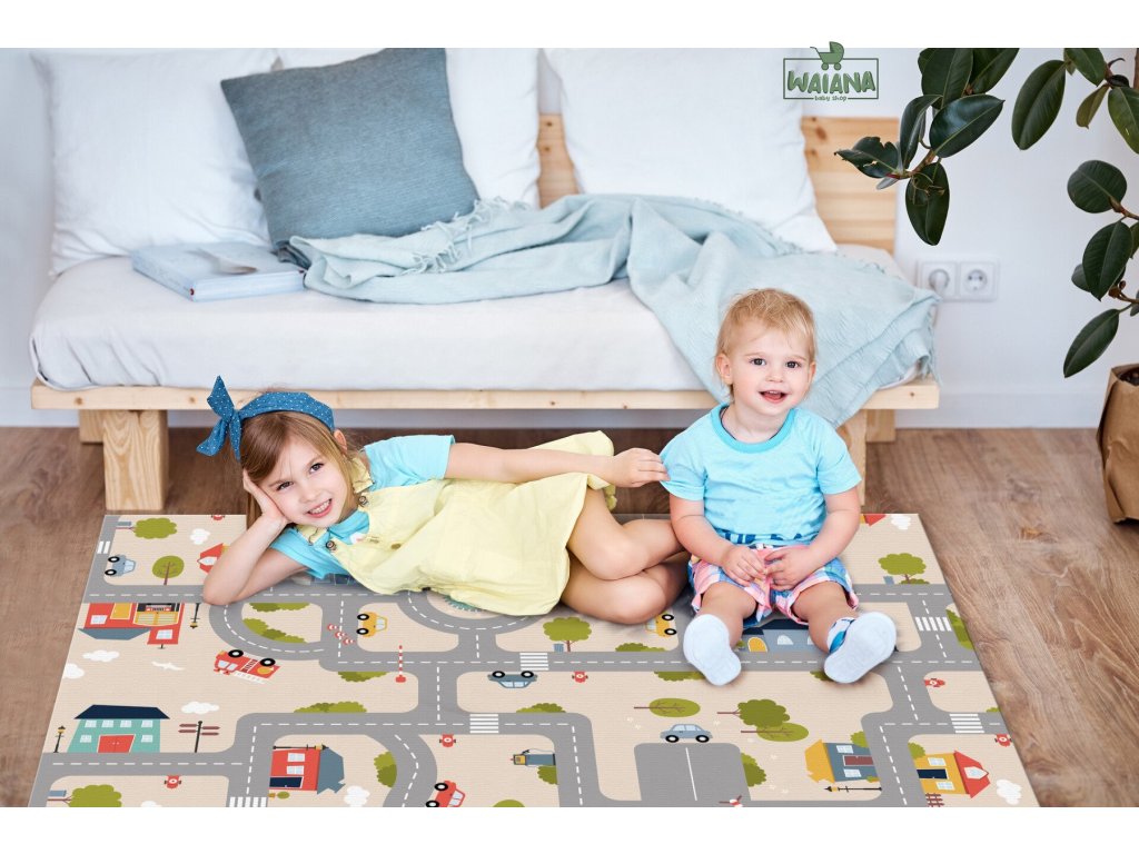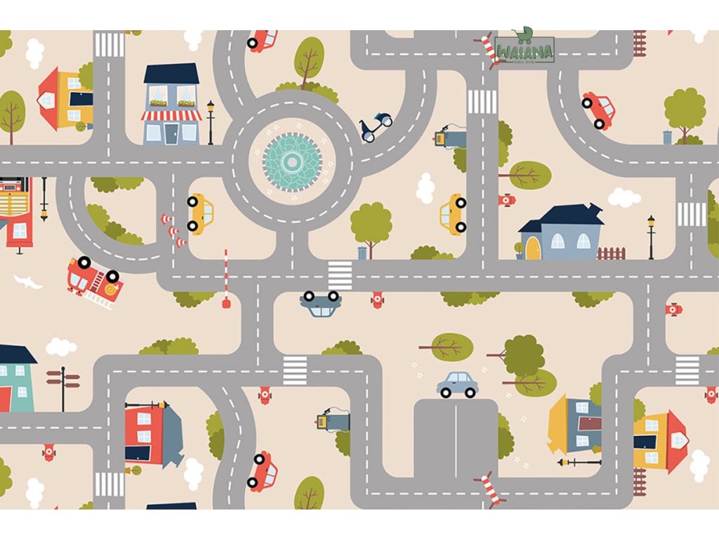 Vinylová podložka "Mestské ulice" má farebnú potlač zobrazujúcu rôzne aspekty mestského života. Panoráma predstavuje početné budovy, kľukaté uličky, dynamické stavenisko, rušné letisko, prepletené železničné trate a ďalšie prvky, ktoré umožnia deťom rozvíjať ich predstavivosť a kreativitu a zároveň poskytujú skvelú zábavu.