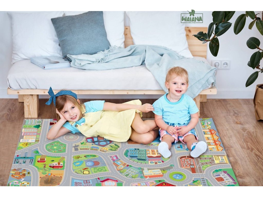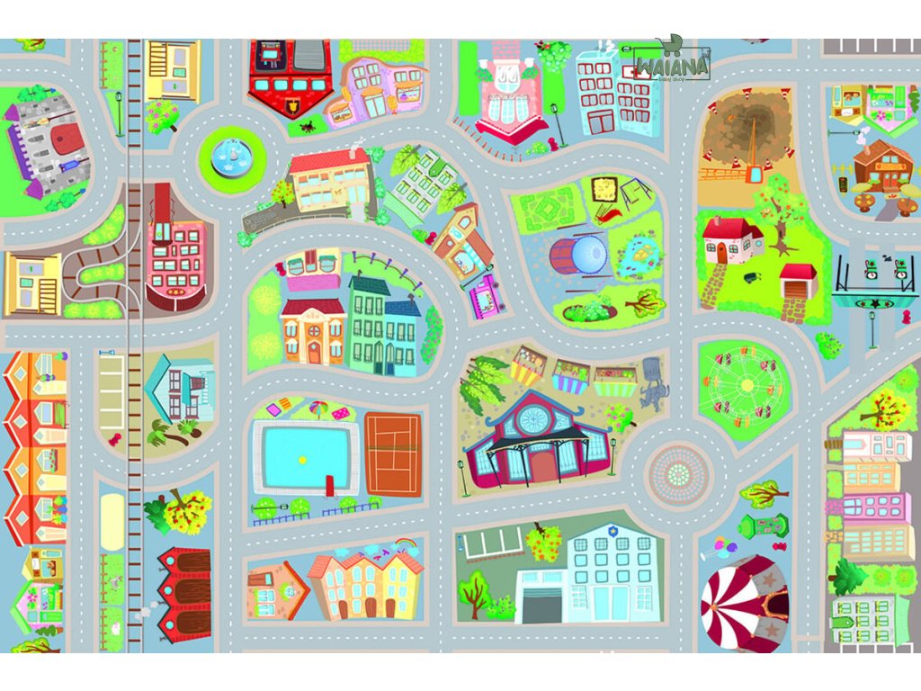 Vinylová podložka "Mestečko" má farebnú potlač zobrazujúcu rôzne aspekty pokojného mestského života. Panoráma predstavuje roztomilé budovy, pokojné uličky, parky, obchody a ďalšie prvky, ktoré umožnia deťom rozvíjať ich predstavivosť a kreativitu a zároveň poskytujú skvelú zábavu.