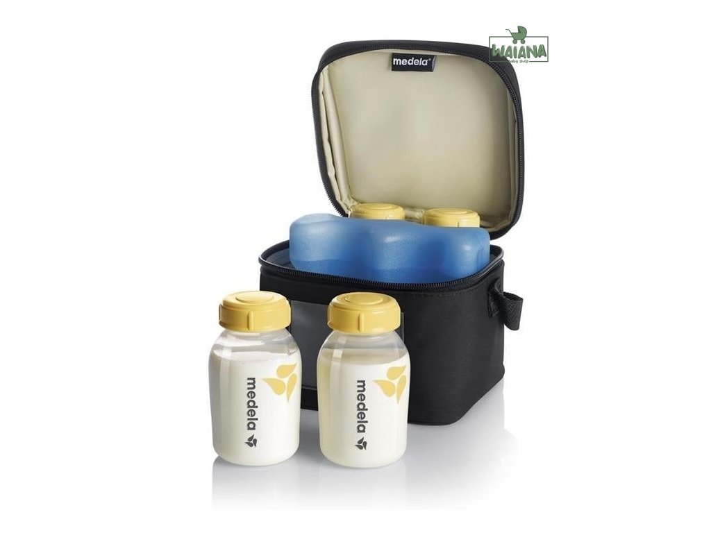 Chladnička (chladiaca taška) Medela je skvelé riešenie pre aktívne matky. Produkt umožňuje bezpečný transport rôznych potravín. V taške sa nachádzajú 4 fľaše Medela bez cumlíkov s každá s kapacitou 150 ml (bez škodlivého BPA-bisfenolu-A) a modrá chladiaca kazeta.