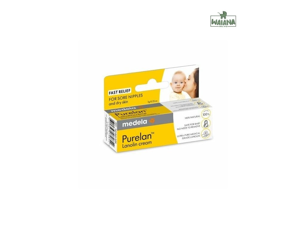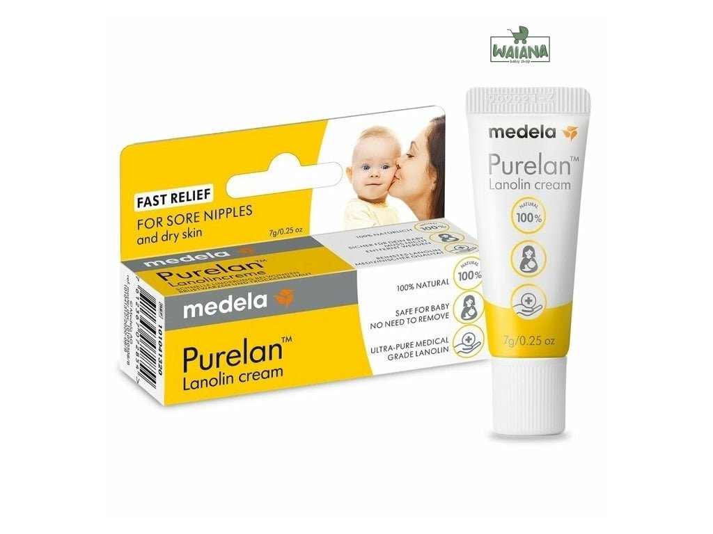 Medela Purelan ™ - lanolínová masť, ktorá je 100% prírodná a bezpečná pre dojčatá. Nie je potrebné ju pred dojčením odstraňovať.