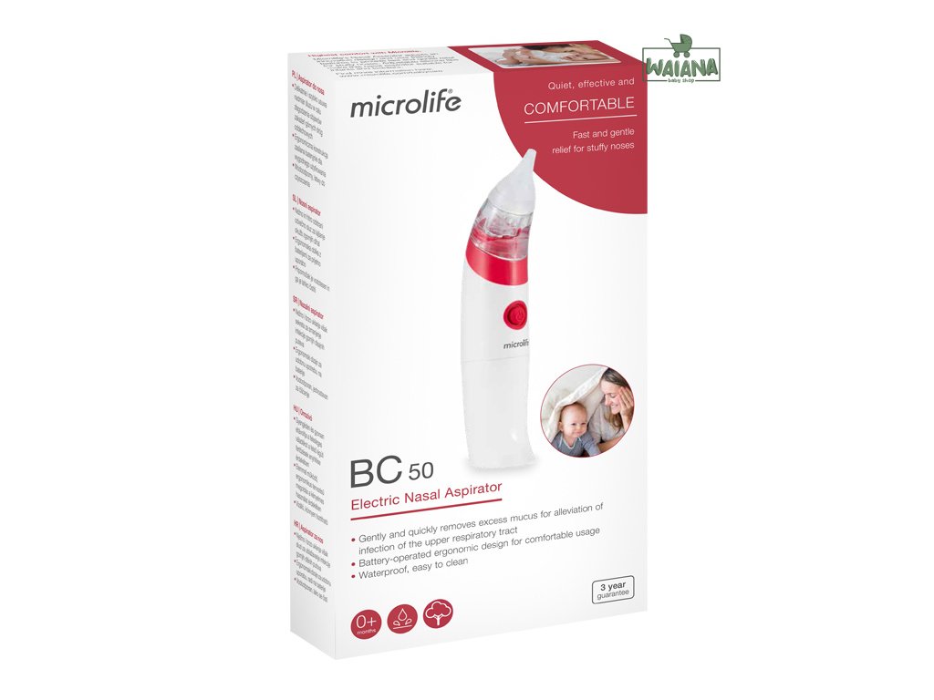 Elektrická nosová odsávačka Microlife BC 50 poskytuje jemné a nepretržité odsávanie na jednoduché a efektívne odstránenie nosového hlienu u detí vo veku od 0 mesiacov. Jemne a rýchlo odstraňuje prebytočný hlien na zmiernenie infekcie horných dýchacích ciest. Microlife BC 50 vyčistí nos dieťaťa jednoducho, hygienicky a efektívne v priebehu niekoľkých sekúnd.
