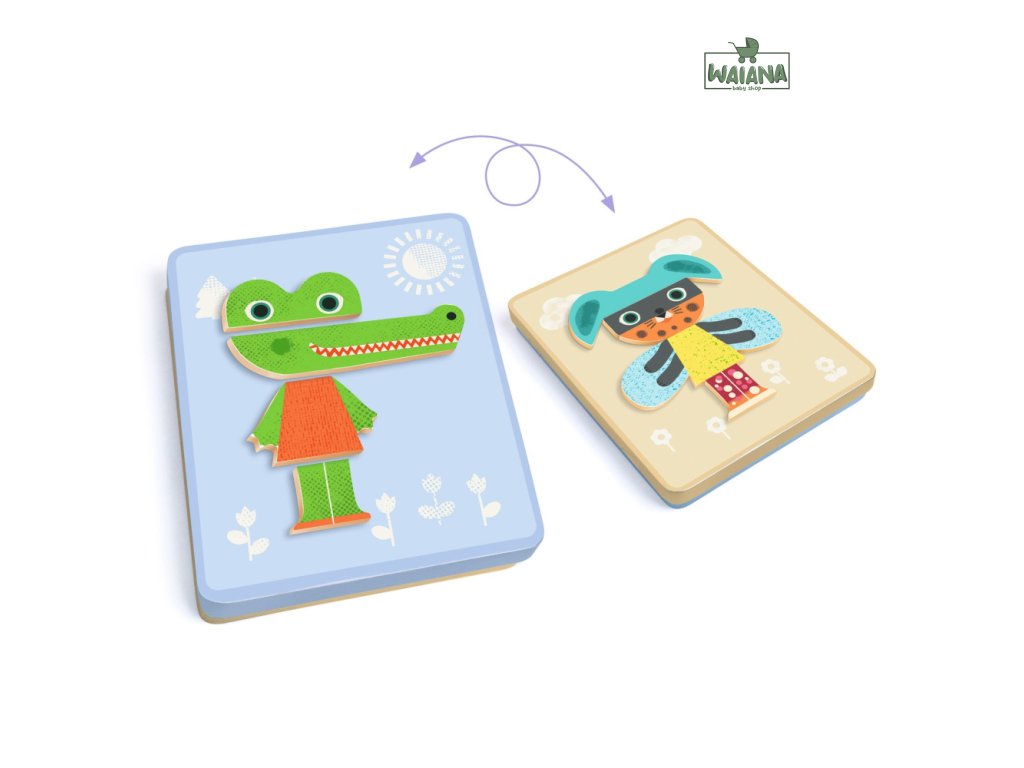 Miešame zvieratká: Magnetická hračka InZeBoxMagnetická mix & match hra so zvieratkami pre detiMagnetická hračka InZeBox Mix Animals od Djeco prináša deťom hravú kreativitu pomocou magnetických drevených dielikov, ktoré môžu kombinovať na kovovej krabičke v tvare domčeka. Deti si skladajú rôzne veselé zvieratká – napríklad králika, mačku, sovu, rybu alebo iné kombinácie podľa vlastnej fantázie mixovaním hláv, tiel a nôh. Magnety sa jednoducho pripínajú k obojstrannej magnetickej ploche a po hre sa všetky dieliky uložia späť do kovovej krabičky, ktorá zároveň slúži ako hračka. Hra je ideálna pre malé ruky, vhodná pre deti od cca 2 rokov, a je skvelá aj ako zábava na cesty.Prečo si ju deti zamilujú• mix & match skladanie zvierat pomocou magnetických dielikov• obojstranná magnetická plocha pre dvojitú zábavu• jednoduché ukladanie magnetov do krabičky• rozvíja kreativitu, jemnú motoriku a priestorové vnímanie• vhodné pre deti od 2 rokovObsah balenia• 1 kovová magnetická krabička s ilustráciou• 32–41 drevených magnetických dielikov so zvieracími prvkami