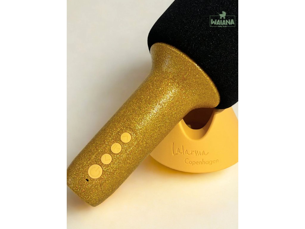 Mikrofón Glitter Grove GoldVáš vlastný koncert začína práve terazZaži svet zábavy a hudobnej kreativity s Mikrofónom Glitter Grove Gold! Tento zlatý mikrofón s trblietkami je viac než len hračka – je to prenosná koncertná stage pre deti, kde každý môže zažiariť a spievať z plných pľúc. Perfektný na karaoke večery, improvizované koncerty alebo len zábavné hry s kamarátmi.Funkcie, ktoré spravia z každého koncertu nezabudnuteľný zážitokBezdrôtový Bluetooth mikrofón a reproduktor – spievajte k hudbe z mobilu alebo tabletu bez káblovHlasové efekty - Normálny, Vysoký, Hlboký, Chipmunk a Mega Hlboký – zábava pri každom tóneNastaviteľná hlasitosť a dozvuk – prispôsobte zvuk presne podľa náladyVstavaný reproduktor pre silný a kvalitný zvuk – každý tón bude počuťDvojitým kliknutím na tlačidlo zvýšenia hlasitosti aktivujete efekt ozveny – vytvorte autentickú koncertnú atmosféruNabíjanie cez USB-C – kábel je súčasťou balenia, rýchle a pohodlné nabíjanie - čas nabíjania 1,5 hĽahký a prenosný model – ideálny na hranie doma alebo na cestyMagický zlatý dizajn s trblietkami – deti si ho okamžite zamilujúIdeálny darček – pre malé speváčky, spevákov a kreatívne deti, ktoré milujú hudbu a zábavuTechnické špecifikácieBluetooth verzia: 5.3Výstupný výkon: 5 WFrekvenčný rozsah: 100 Hz – 10 kHzVstup: DC 5 V / 1 ABatéria: Li-ion 3,7 V, 800 mAh (2,96 Wh)Lalarma Mikrofón Glitter Grove Gold podporuje kreativitu, sebavedomie a radosť z hudby. Deti sa učia spievať, predstierať a baviť sa, zatiaľ čo si rozvíjajú rytmus, hlasový prejav a hudobný cit. Každý koncert sa stáva farebným a nezabudnuteľným dobrodružstvom!