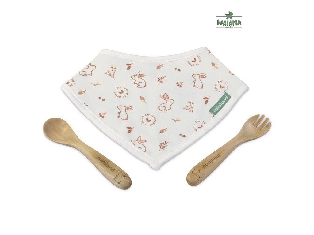 Miniland ECO-friendly Sada ekologických príborov s podbradníkom, Zajac