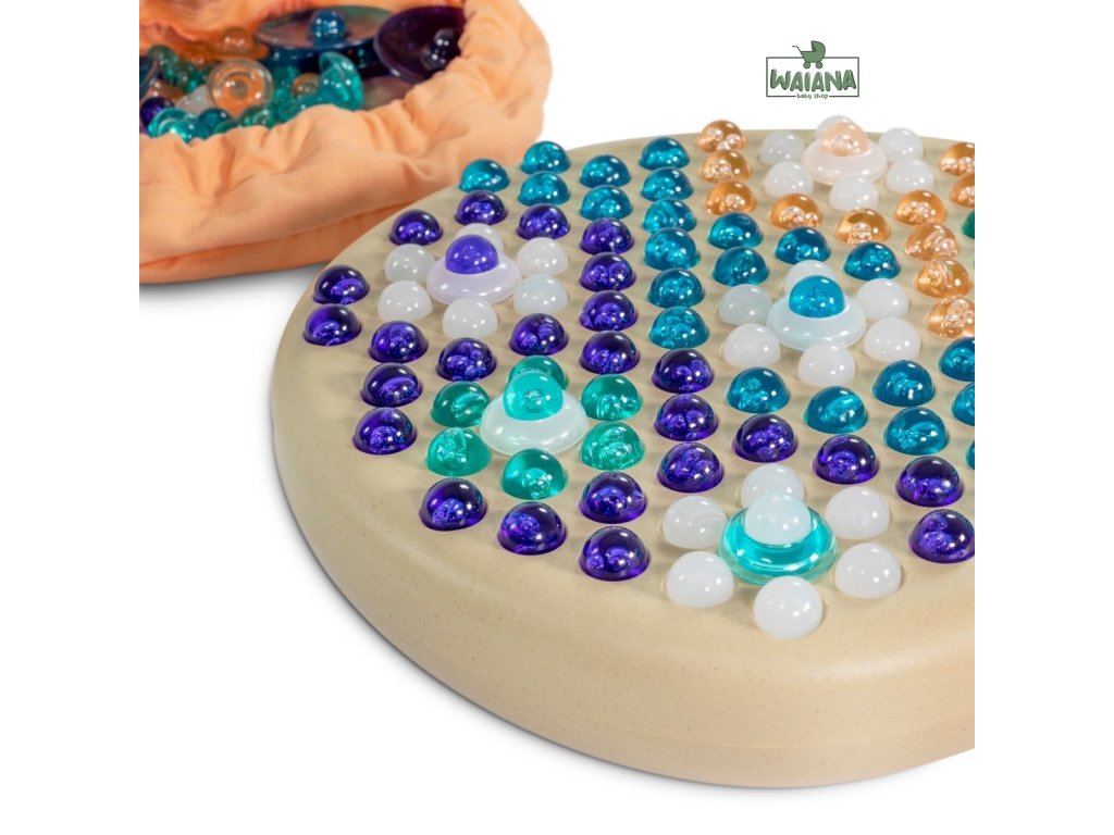 Hračka v tvare veľkého kameňa s množstvom farebných korálok, ktorá slúži na vytvorenie mandaly.