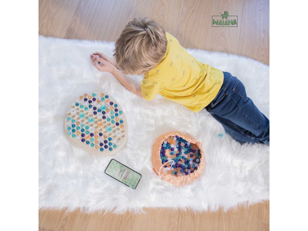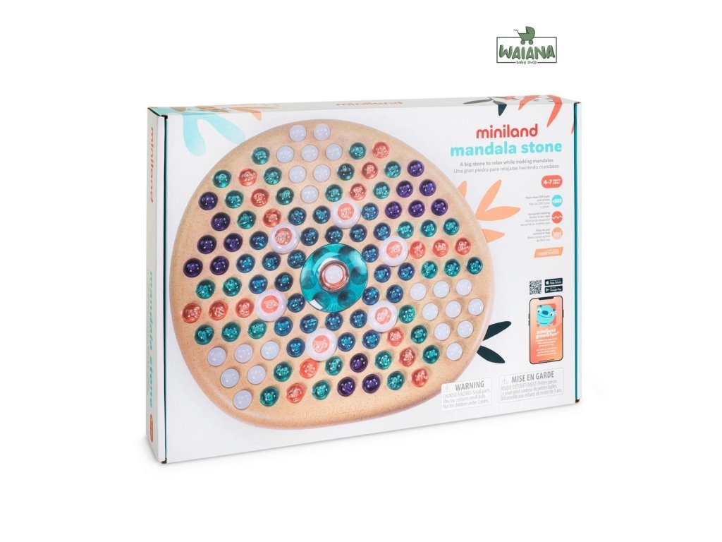 Prebudí fantáziu.Táto hračka - mandala sa skladá z veľkého kameňa, na ktorom môžu deti vytvárať obrázky pomocou trblietavých guľôčok rôznych tvarov a farieb. Táto hra pripomína tradičnú, starú indickú činnosť maľovania mandál. Takáto činnosť má na bábätko veľmi dobrý vplyv.Vytvorenie mandaly.-rozvíja predstavivosť-upokojuje-zlepšuje koncentráciu-má relaxačný účinok-pomôže vám vyjadriť myšlienkyAplikácii miniland grow & fun.Okrem vlastnej fantázie máte prístup aj k aplikácii miniland grow & fun. Existuje niekoľko vzorov mandál, ktoré môžete použiť ako návod na vytvorenie vlastného pri počúvaní relaxačných melódií z celého sveta, vr. Japonska, Indie či Afriky.Existujú aj iné hry pre deti.Stiahnite si aplikáciu pre Android>https://play.google.com/store/apps/details?id=com.miniland.game&hl=en_US&gl=USStiahnite si aplikáciu pre iOS>https://apps.apple.com/gb/app/grow-fun-real-needs/id1495947376Jedinečný zážitok.Vytváranie mandaly je jedinečný multizmyslový zážitok, ktorý si deti môžu užiť, nech sú kdekoľvek!Veľká základňa pre pohodlnú výrobu mandaly.Tvar veľkého kameňa je určený pre deti, aby mohli ľahko používať prvky a relaxovať celé hodiny a vytvárať nekonečné vzory.184 guľôčok s krištáľovým efektom.Vďaka prvkom mnohých farieb a tvarov môžu deti vytvárať tie najpestrejšie mandaly, dokonca ich môžu usporiadať v 3 výškach. A čo viac, vďaka pripojenej praktickej taške ich všetky po skončení hry uložíte.Multisenzorický zážitok.Aplikácia Miniland obsahuje relaxačné melódie z celého sveta, ktoré je možné prehrávať pri hraní, aby sa vaše dieťa pri hre sústredilo.Obsahuje 6 inšpiratívnych modelov.Sada obsahuje leporelo so 6 vzormi, vďaka ktorým môže dieťa začať svoje dobrodružstvo s vytváraním mandaly. Neskôr ich bude obmedzovať len jeho vlastná fantázia.Zaujímavý fakt o mandale,V náboženstve budhizmu sa mandala používa predovšetkým pri meditácii. V tantre hrá veľmi dôležitú úlohu. Mandala je jedným z najdôležitejších nástrojov pre vedenie budhistov k osvieteniu.Technické údaje.vek: 4-8 rokovrozmery balenia (1 ks): D 6cm x Š 41cm x V 30cmfarba: viacfarebnározmery (cm): šírka 28 x výška 6 x dĺžka / hĺbka 25hmotnosť produktu po rozbalení: 0,001 kghmotnosť s obalom: 1,262 kg