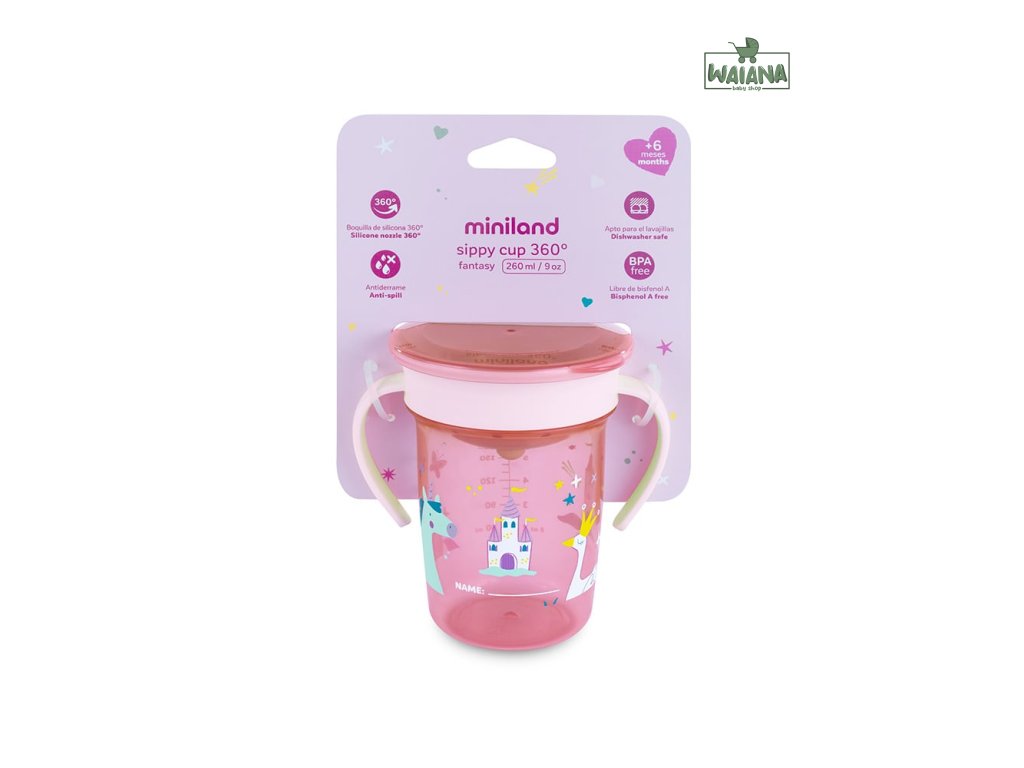 Náučný pohárik Miniland je ideálny pre batoľatá od 6. mesiaca, ktoré sa učia piť samostatne. Vďaka ergonomickým držadlám a silikónovému náustku 360° podporuje jeho prirodzený vývoj a zároveň zabraňuje rozliatiu nápoja. Je bezpečný, bez BPA a ľahko sa čistí v umývačke riadu.