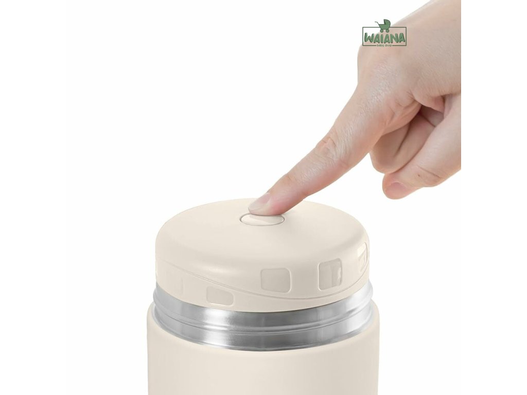 Termoska je vyrobená zo 100 % materiálov bez bisfenolu A (BPA), čo zaisťuje bezpečnosť pre vaše dieťa. Jej elegantný a moderný dizajn s jemnými vzormi robí z tohto praktického pomocníka aj štýlový doplnok. Jednoduché čistenie zaručuje, že údržba je minimálna.