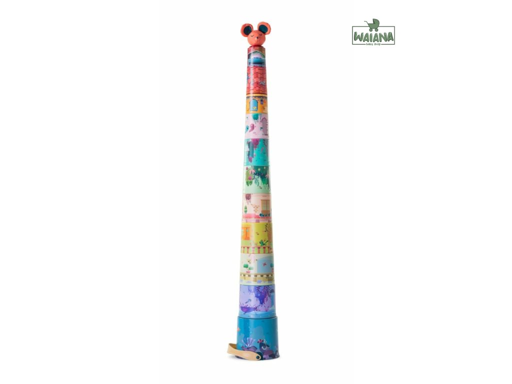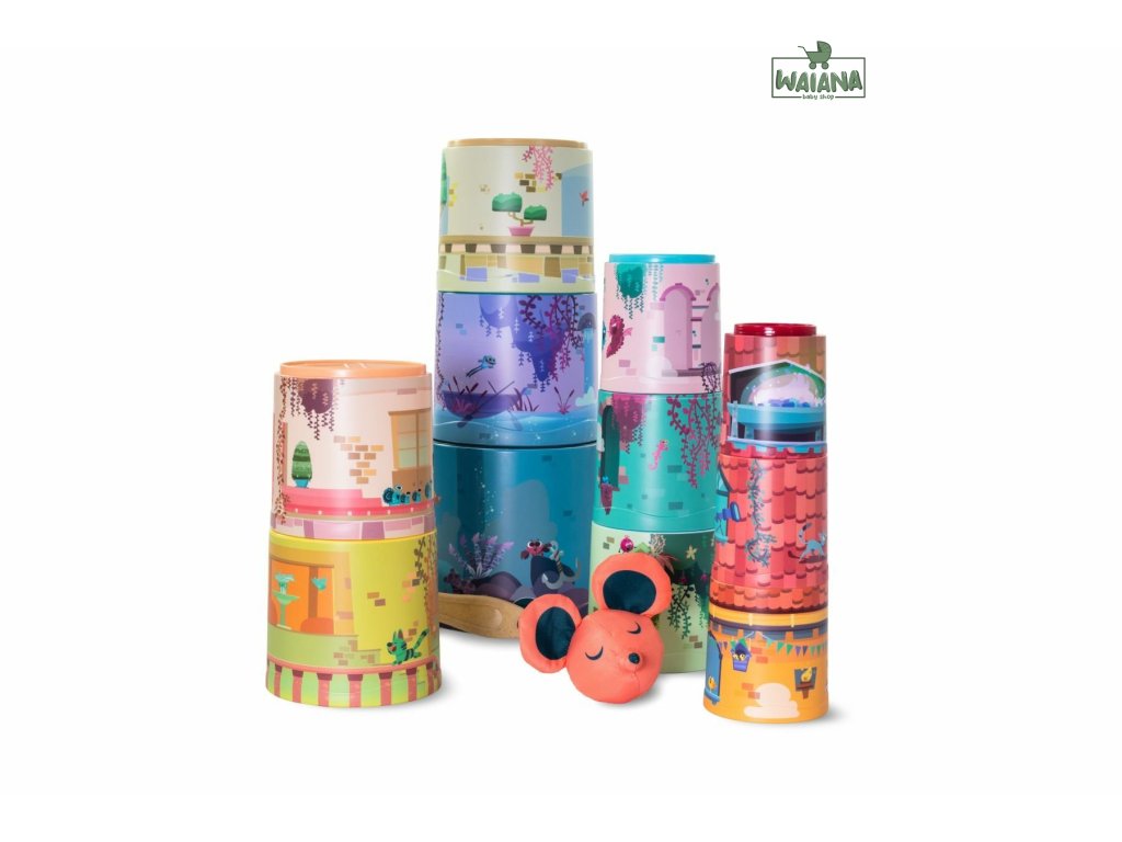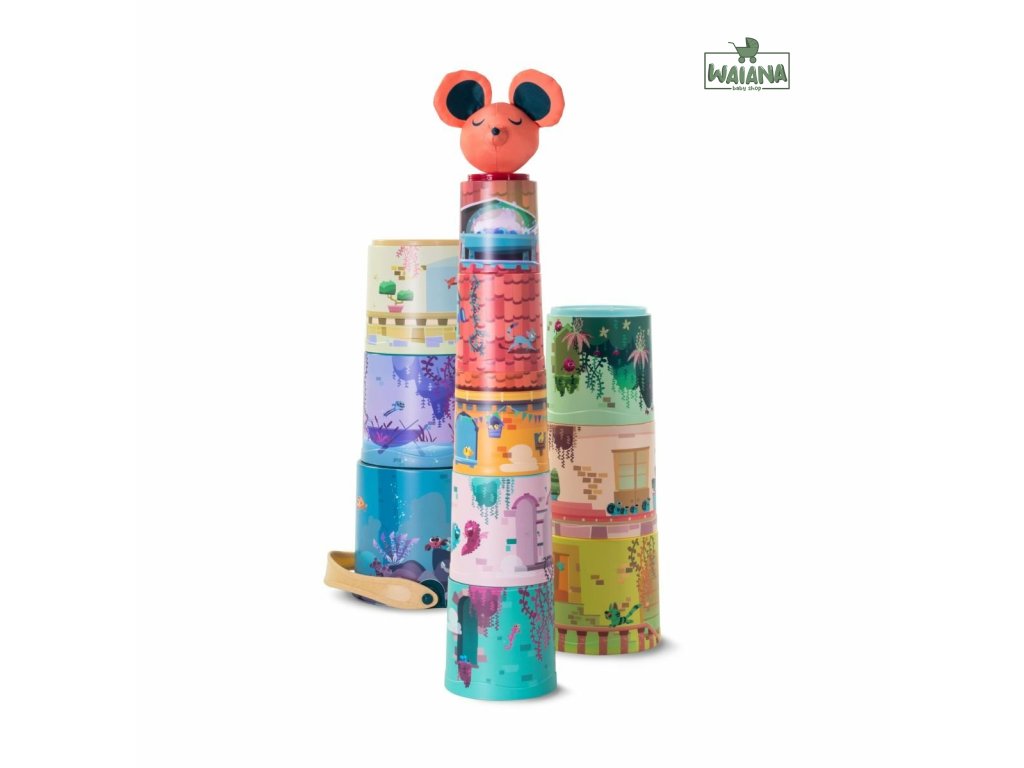 Postavte si rozprávkový palác.Táto veža v tvare pohára je čistá fanztasia! Deti môžu jednoduchým spôsobom postaviť obrovské veže z 11 pohárov. Na pohároch sú ilustrácie rôznych miestností z rozprávkového paláca, v rôznych farbách a s množstvom postavičiek.Myška ako zámocká pani.Hrad je tiež domovom malej, chlpatej, plyšovej myšky, ktorá sa môže schovať v akomkoľvek stavebnom bloku alebo skákať z diaľky, aby zničila vežu. Rozkošná myš, s ktorou môže vaše dieťa zažiť nekonečné dobrodružstvá bude dobrou priateľkou každého drobca.11 zábavných pohárov. Poháre zdobené kresbami, ktoré možno na seba naskladať od najväčšieho po najmenšie a vytvoriť tak obrovskú príbehovú vežu.Vytvorte si vlastné príbehy.Batoľatá budú môcť vymyslieť toľko príbehov, koľko si len dokážu predstaviť, a to tak, že schovajú malú myš medzi bloky alebo ju hodia, aby zbúrali vežu.Ľahké prenášanie.Najväčší pohár má ucho, takže zvyšné poháre doň zmestíte a vezmete ho všade so sebou.Vizuálne a priestorové vnímanie.Schopnosť presne vnímať vizuálny svet a reprodukovať, manipulovať a upravovať aspekty vnímania. Zahŕňa našu schopnosť vizualizovať, snívať a predstaviť si.Technické údaje.vek: 18m-3r.rozmery balenia (1 ks): dĺžka: 25cm x šírka: 15cm x výška: 29cmhmotnosť s obalom: 0,78 kg