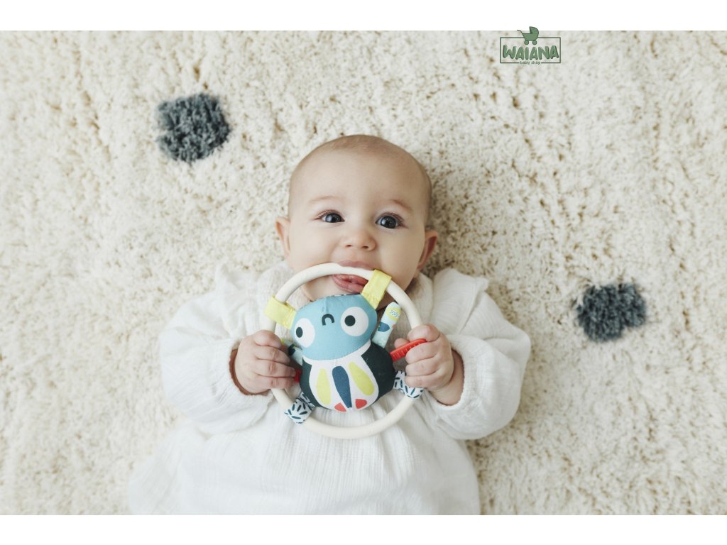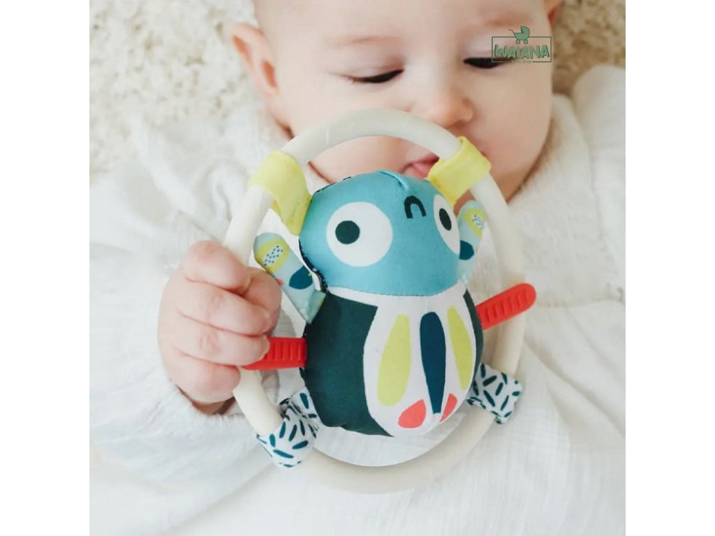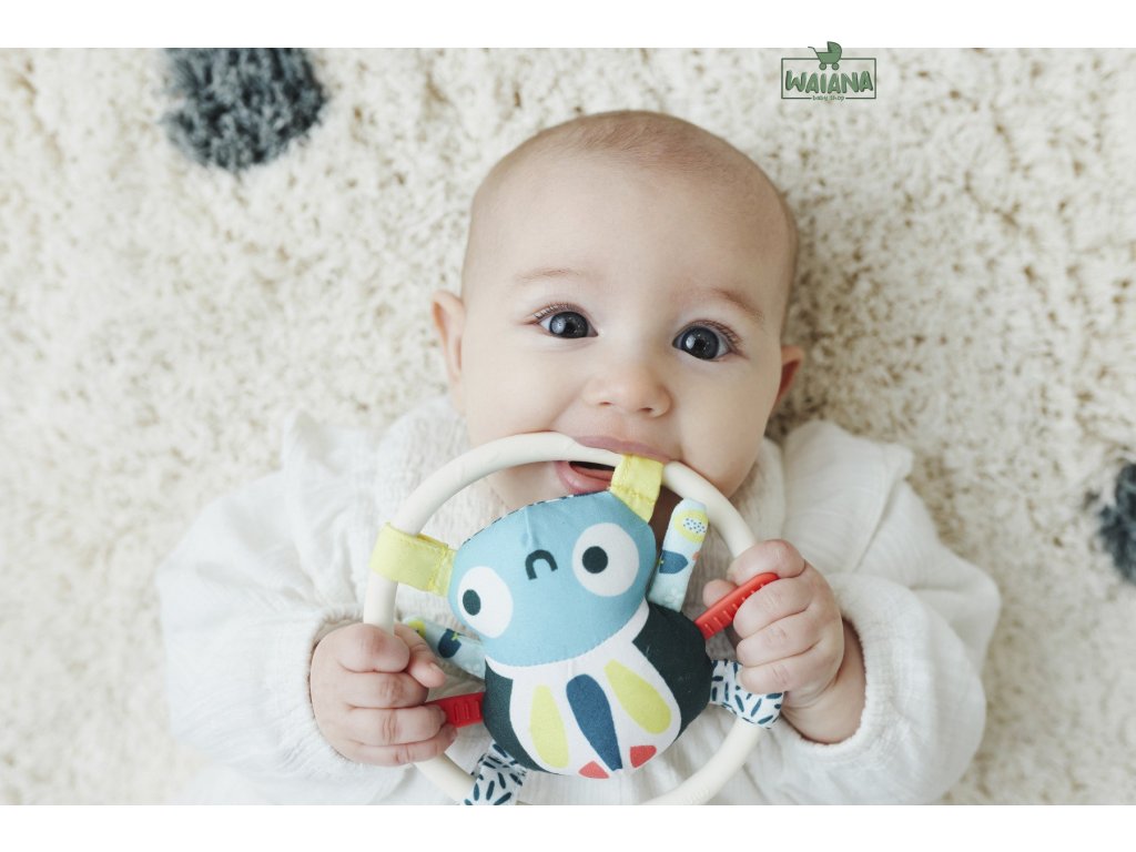 Je plná rôznych tvarov, textúr a farieb, ktoré umožňujú bábätkám objavovať svet okolo seba prostredníctvom svojich zmyslov dotyku, sluchu a zraku. Okrem toho, že stimuluje zvedavosť bábätka a láka ho k hraniu, má aj ďalšie výhody. Silikónové nožičky slúžia ako mäkké hryzátko, ktoré pomáha zmierniť nepohodlie spojené s prerezávaním zúbkov.