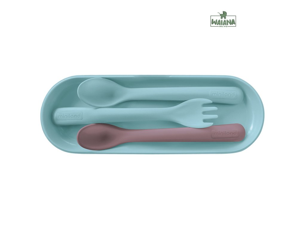 Miniland Set detský príbor - ergonomický, Terra, modrý
