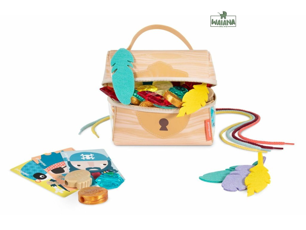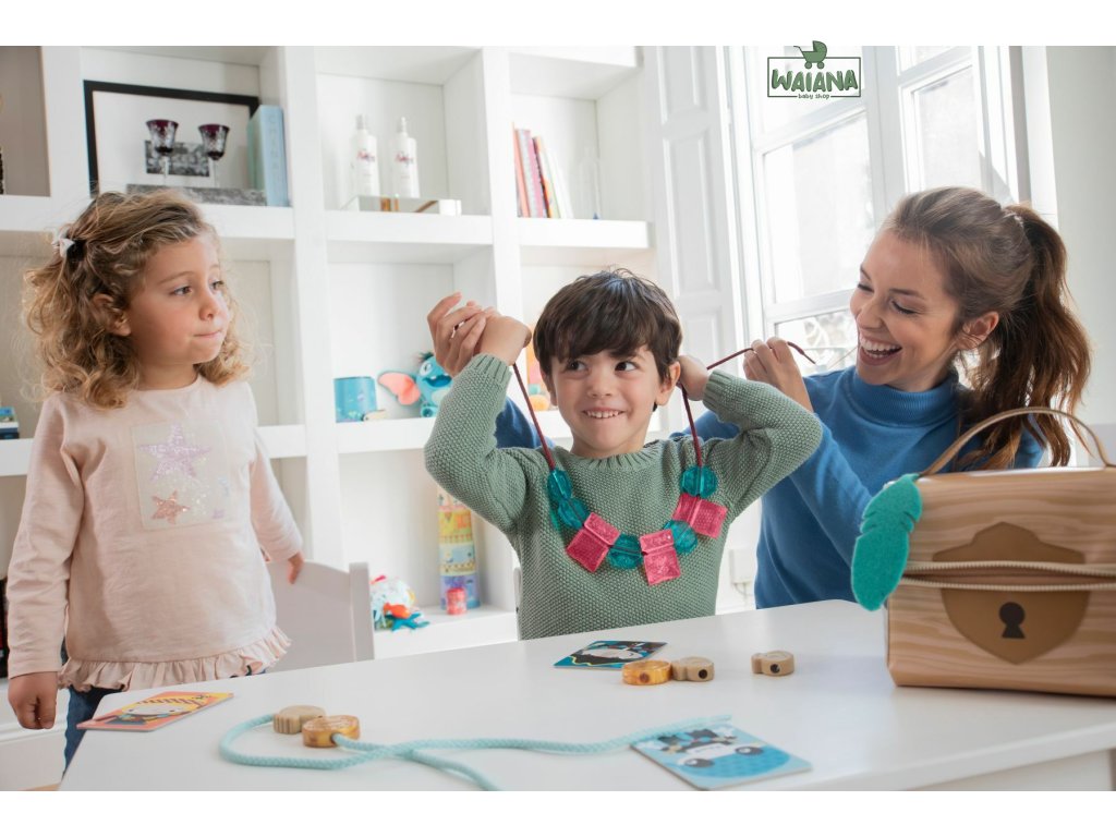 Činnosť na dlhé hodiny.Rôzne tvary a farby určite zaujmú každé batoľa a zabezpečia tvorivú činnosť na dlhú dobu. Všetko je zabalené v šikovnej truhlici s rúčkou, pripomínajúcej poklad, ktorú si môžete vziať kamkoľvek so sebou.Rozvíja zmysly.Vďaka hre na navliekanie si dieťa rozvinie kreativitu, priestorovú predstavivosť, manuálne zručnosti, presnosť pohybov, logické myslenie a naučí sa aj tvary a farby.Kamkoľvek so sebou.Diamanty, rubíny, lebky, perie, to všetko je obsiahnuté v praktickej krabičke s rukoväťou, ktorú si môžete vziať kamkoľvek so sebou. Sada obsahuje aj karty so vzormi náhrdelníkov.Technické údaje.vek: 3r-6r.rozmery balenia (1 ks): dĺžka 20cm x šírka 12cm x výška 15cmhmotnosť s obalom: 0,6 kg