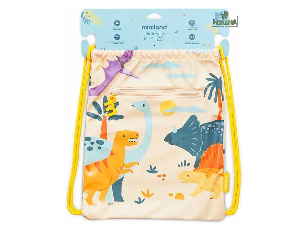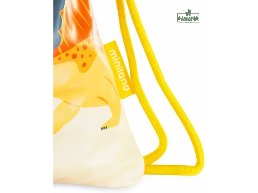 Športový batoh Miniland s veselým motívom dinosaurov je ideálnym a praktickým doplnkom pre každé dieťa. Vďaka svojmu jedinečnému dizajnu, ktorý kombinuje funkčnosť tašky so sťahovacími šnúrkami a ľahkého batoha, sa stane obľúbeným spoločníkom na každodenné nosenie do škôlky, na výlety alebo na krúžky.
