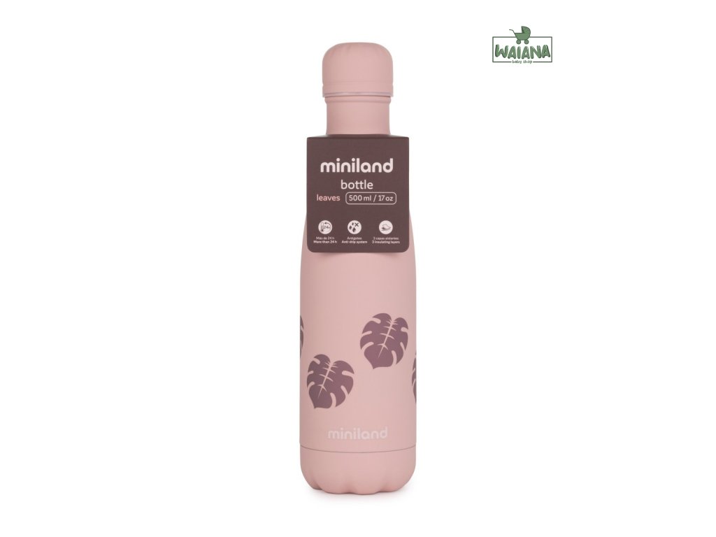 Miniland Termosková fľaša Terra, 500ml, ružová/listy