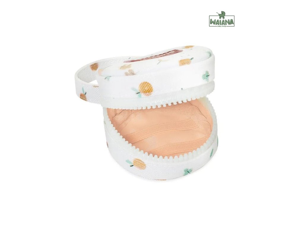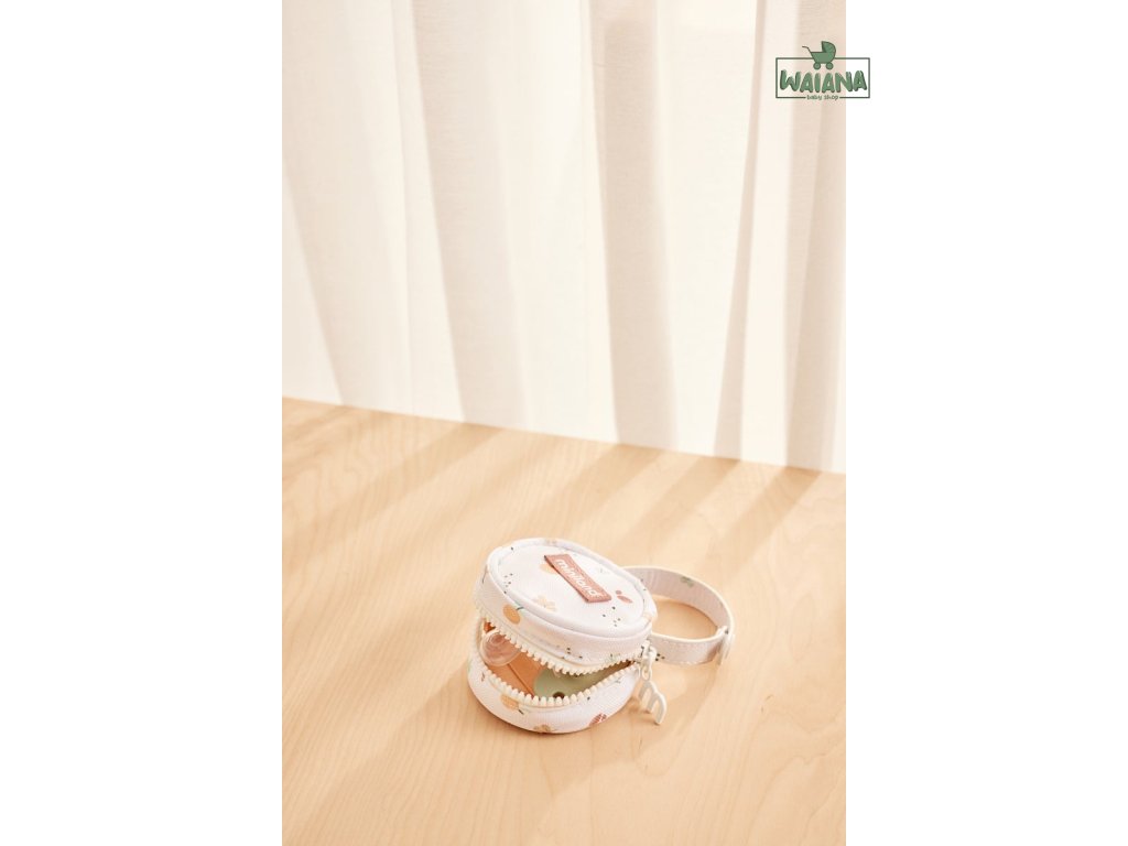 Obal je vyrobený pre maximálnu funkčnosť. Má otvorenie na zips a možnosť otvorenia až do 180°, čo uľahčuje vkladanie a vyberanie cumlíka. Pre ešte väčšiu bezpečnosť a istotu je vybavený držiakom s tlačidlom, vďaka ktorému ho môžete ľahko pripevniť na kočík, tašku, postieľku alebo prebaľovaciu podložku. Vďaka tomu ho budete mať vždy poruke a cumlík sa nestratí ani neznečistí.