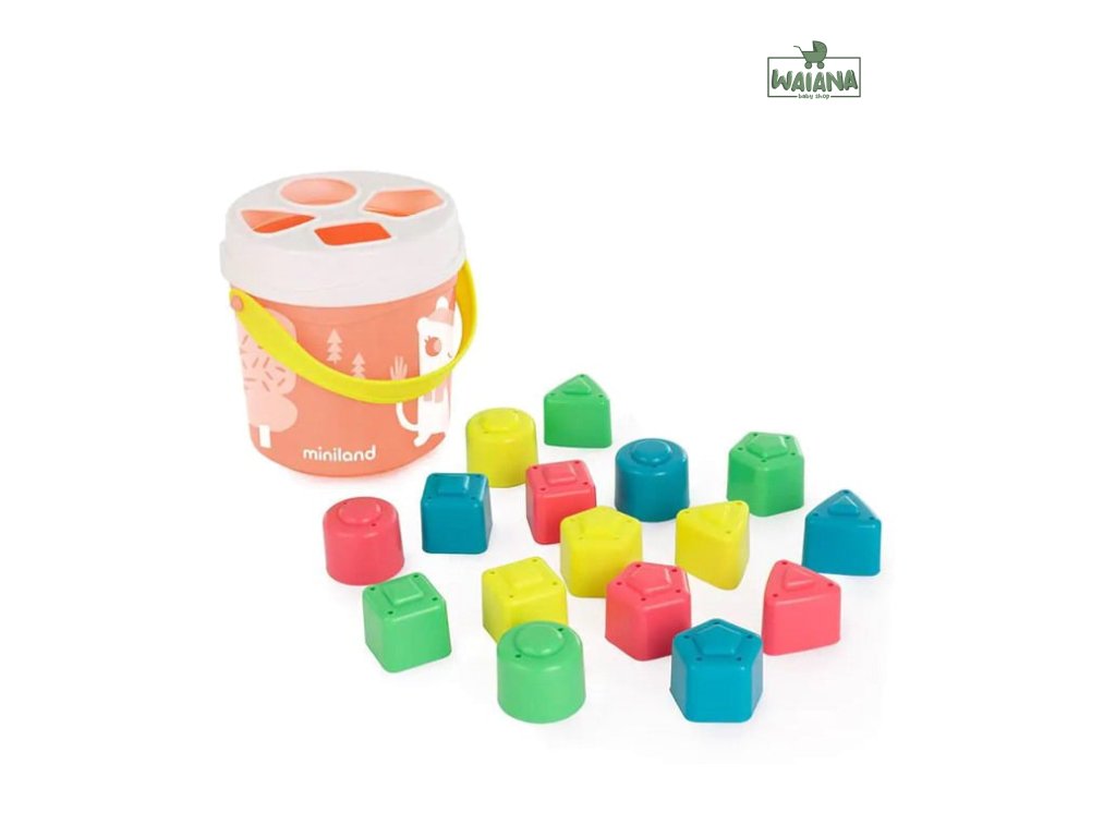 Miniland Vedierko s blokmi na triedenie tvarov, lososové
