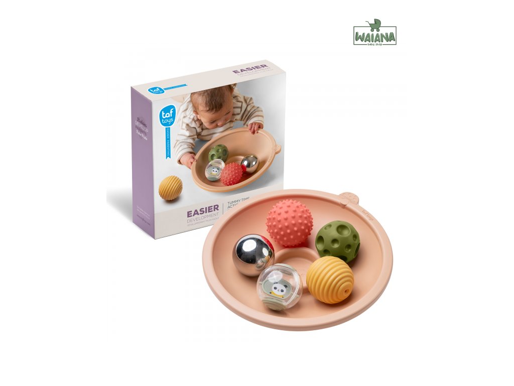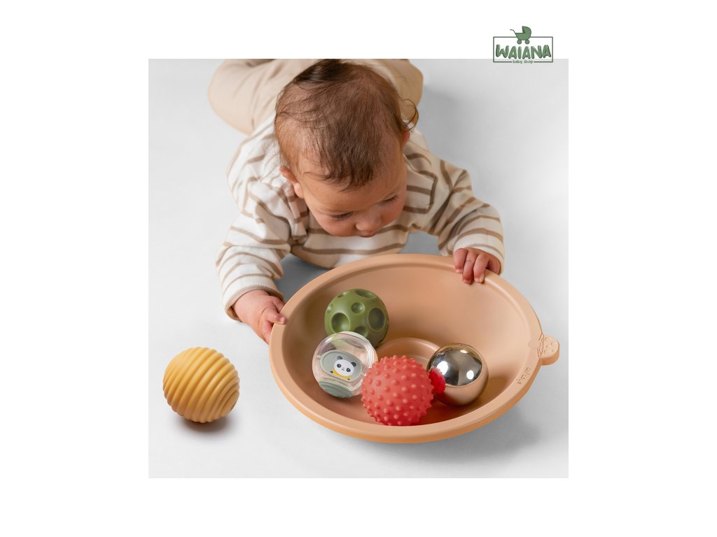 Interaktívna herná misa s loptičkami bola navrhnutá tak, aby spríjemnila a predĺžila dobu, ktorú bábätko trávi na brušku. Miska sa jemne pohybuje pri dotyku a motivuje dieťa k aktívnemu pohybu, objavovaniu a posilňovaniu svalov potrebných na ďalší motorický vývoj.