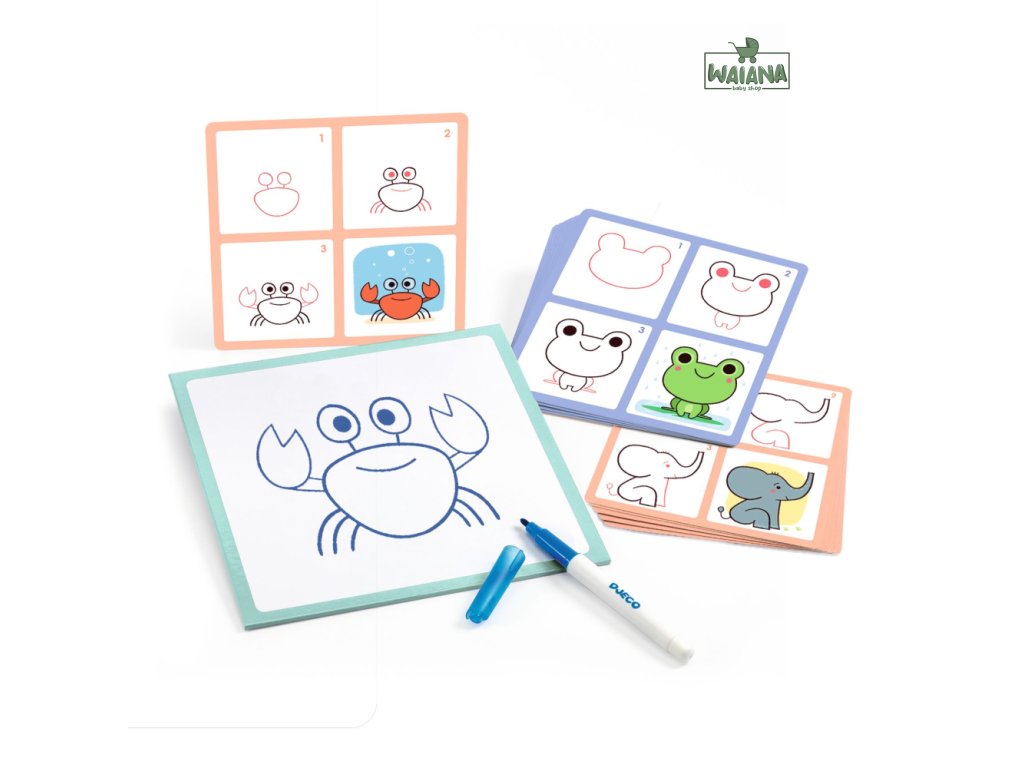 Mláďatá Kreslenie krok za krokomUčte sa kresliť roztomilé mláďatká hravou formouSada Mláďatá – Kreslenie krok za krokom pomáha deťom objaviť radosť z kreslenia jednoduchým a zrozumiteľným spôsobom. Vďaka názorným predlohám sa deti učia kresliť roztomilé zvieracie mláďatká postupne, krok za krokom. Každý obrázok je rozdelený na malé, ľahko zvládnuteľné kroky, vďaka čomu kreslenie nefrustruje, ale motivuje skúšať znova a znova. Deti kreslia na zotierateľnú tabuľu pomocou fixky, hotový obrázok môžu jednoducho zotrieť a začať odznova. Táto opakovateľná aktivita podporuje jemnú motoriku, koordináciu ruky a oka, trpezlivosť aj sústredenie a zároveň posilňuje sebadôveru malých umelcov.Prečo si túto sadu deti zamilujú: