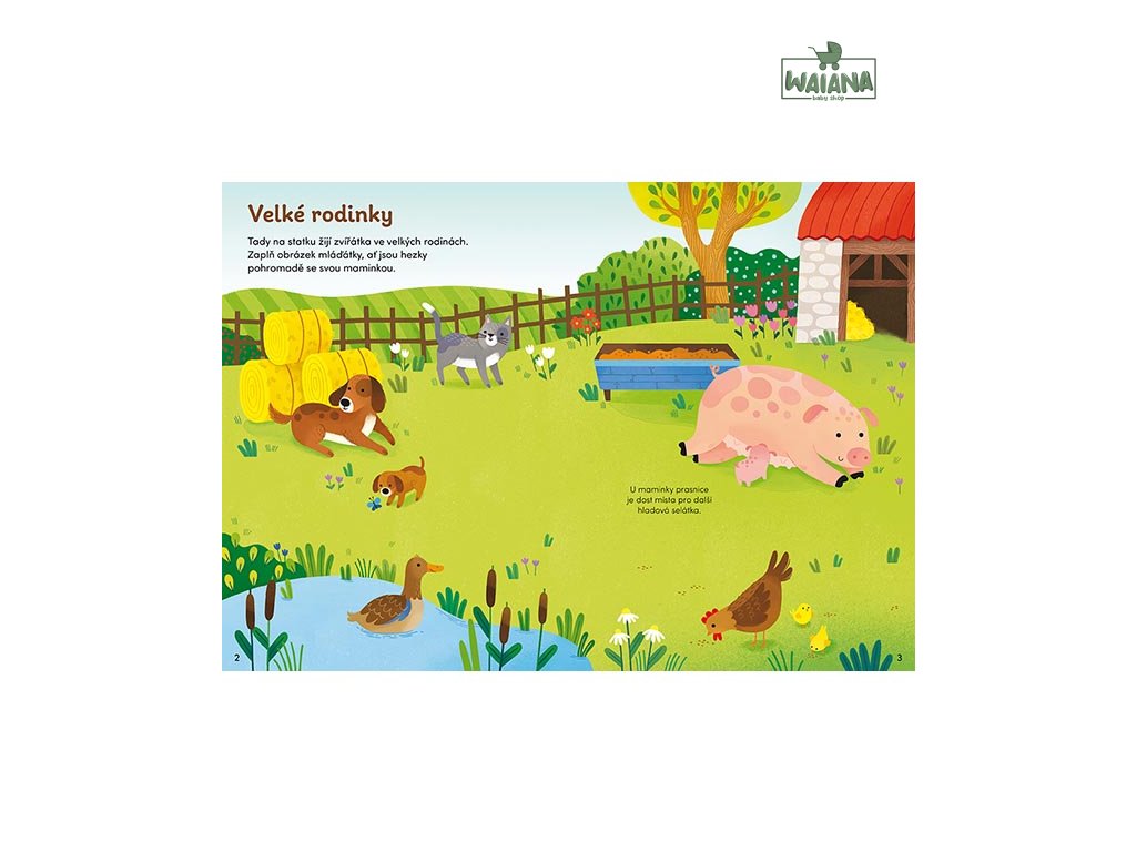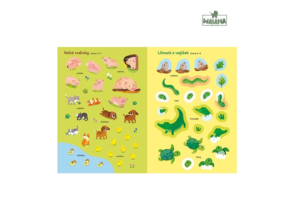 Mláďátka Moje první samolepkováníZábava so samolepkami!S touto samolepkovou knižkou sa detičky zabavia s nálepkami a spoznajú mnoho mláďat. Knižka so samolepkami, ktorá rozvíja kreativituObsahuje 16 strán a viac ako 100 samolepiek, ktoré sa vďaka menšiemu množstvu lepidla dajú opakovane použiť. Skrátka úžasný darček pre každého malého neposedu! Samolepkové knižky sú tiež ideálnou zábavou pre deti na cestách.