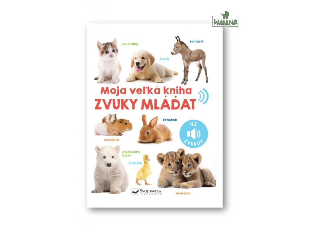 Moja veľká kniha - Zvuky mláďatAko znie svet zvierat a ich mláďat?Objavujte úžasný svet zvierat s touto veľkou zvukovou knihou, ktorá ponúka 43 autentických zvukov zvierat a ich mláďat z rôznych kútov sveta. Každý zvuk je doplnený nádhernými fotografiami, ktoré priblížia ich život a zvyky. Táto kniha je skvelým nástrojom na učenie a objavovanie, ktorá deti zaujme a poskytne im množstvo fascinujúcich informácií o zvieratách a ich prostredí. Pripravte sa na dobrodružstvo plné zvukov a poznania!