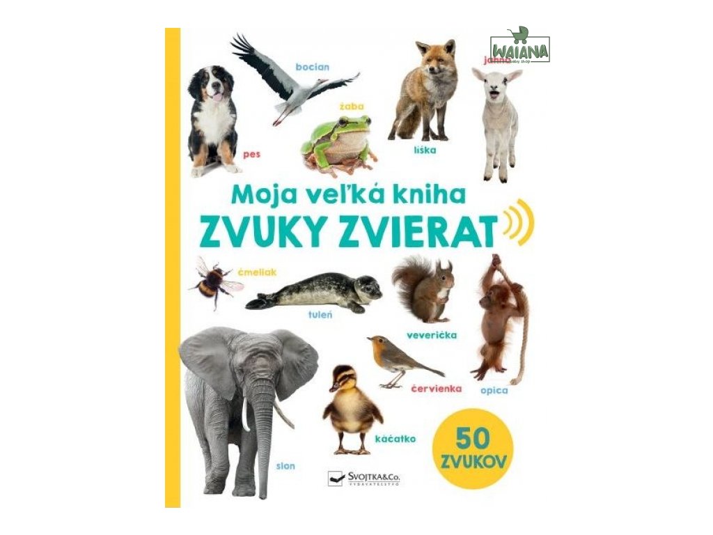 Moja veľká kniha - Zvuky zvieratObjavujte zvieratá pomocou zvukovObjavuj v tejto veľkej zvukovej knihe plnej fotografií 50 zvukov zvierat z celého sveta, zoznám sa s nimi a zisti o nich i pár zaujímavých informácií!