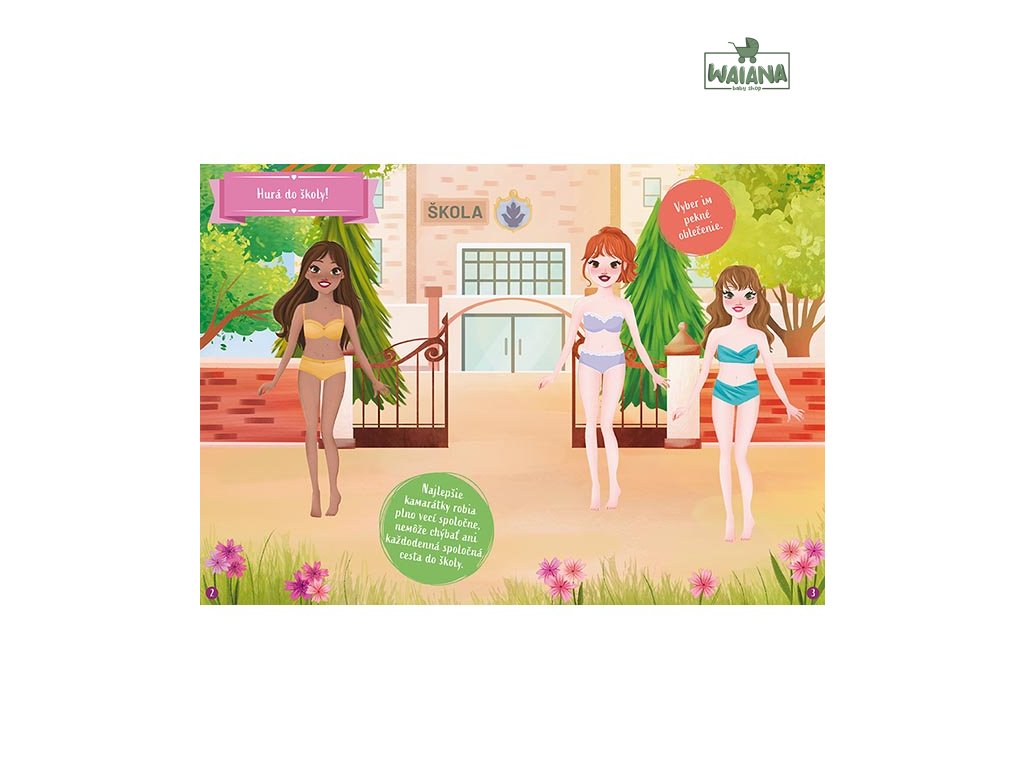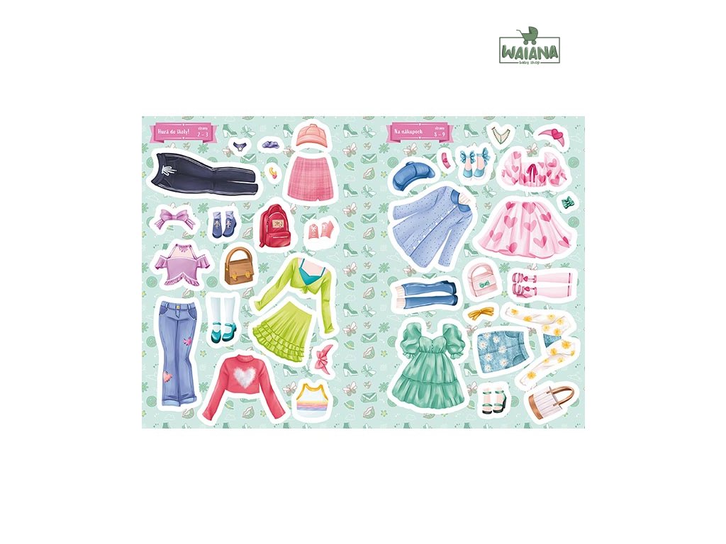 Knižka je ideálna pre deti, ktoré milujú módne hry a radi si predstavujú každodenné situácie. Obsahuje 16 farebných strán s veselými ilustráciami a viac ako 120 samolepiek oblečenia, doplnkov a postavičiek. Deti môžu obliekať kamarátov na rôzne činnosti počas bežného dňa – do škôlky, na ihrisko, na výlet aj na večerné čítanie. Knižka má praktický menší formát, ideálny na cesty alebo do batôžka.