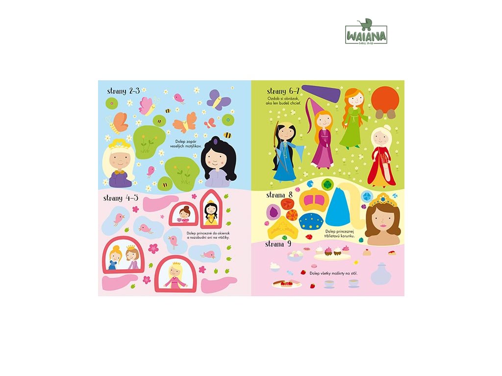 Samolepková knižka Moje prvé samolepkovanie – Princezné je dokonalá voľba pre všetky malé milovníčky rozprávkového sveta. Obsahuje 16 ilustrovaných strán a stovky krásnych, opakovane použiteľných samolepiek – od nádherných šiat, cez korunky až po zámky a zvieracích kamarátov. Samolepky sa dajú vďaka jemnému lepidlu jednoducho odlepiť a premiestniť, čo podporuje kreativitu, jemnú motoriku a rozprávkové rozprávanie vlastných príbehov.