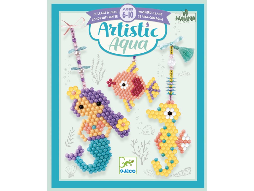 More Artistic Aqua 3 príveskyTvorenie s korálkami z hlbín moraPonorte sa do sveta fantázie a morských dobrodružstiev! Kreatívna sada More Artistic Aqua umožňuje deťom vytvoriť si vlastné podmorské prívesky – morskú vílu, morského koníka a rybu. Pomocou guľôčkových korálok a vody vznikajú originálne ozdoby, ktoré si môžu deti hrdo nosiť alebo darovať. Deti môžu postupovať podľa predlohy alebo sa nechať viesť vlastnou fantáziou a vytvoriť si jedinečné farebné kombinácie. Celý proces je jednoduchý, bezpečný a veľmi uspokojujúci – bez lepidla či žehlenia.Čo sada obsahuje: