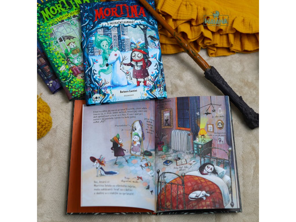 Mortina 1Mortina je síce dievčatko, ale je iná ako ostatné. Jej pleť nemá zvyčajnú ružovú farbu. Naopak, je úplne biela. Lepšie povedané, smrteľne bledá so sivozeleným nádychom..Mortina by chcela mať rovnako starých kamarátov, ale má prísny zákaz ukazovať sa ostatným deťom, lebo by sa jej mohli zľaknúť. Je totiž dievčatko - strašidlo!