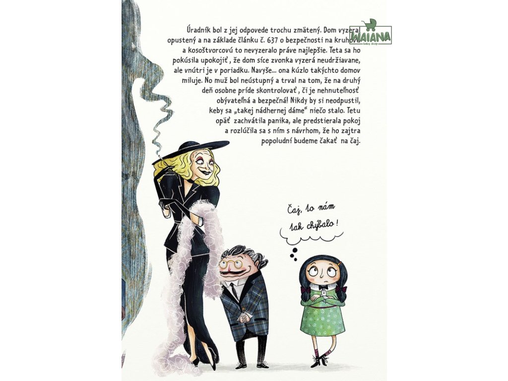 Mortina a Tajomné jazeroTajomné jazero skrýva viac, než sa zdá...Mortina a Tajomné jazero je ďalší diel obľúbenej série o odvážnom a netradičnom dievčatku – nemŕtvej Mortine. Konečne nastali prázdniny a Mortina sa spolu s rodinou presúva do starej vily Ozdôbky pri tajomnom jazere. Všetko nasvedčuje tomu, že ich čaká pokojný čas... až do chvíle, keď sa objaví úradník s jasným plánom – dať vilu do dražby! Mortina sa však len tak nevzdáva. S pomocou svojich priateľov – živých aj neživých – vymyslí plán, ako zachrániť letné sídlo svojej tety Megery. Plný humoru, napätia a gotickej atmosféry, tento príbeh si zamilujú deti aj dospelí, ktorí majú radi vtipné a trochu strašidelné dobrodružstvá.