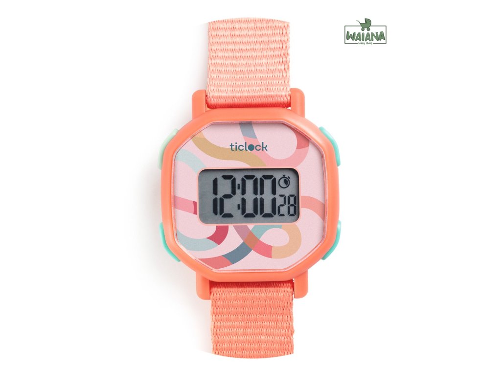 Náramkové digitálne hodinky Ticlock: Pastelová špirálaOdolné detské digitálne hodinky s pastelovým dizajnom, stopkami a podsvietenímHodinky z kolekcie Djeco Ticlock sú ľahké, štýlové a zároveň odolné digitálne hodinky pre deti. Majú osemuholníkové telo (inšpirované prvými japonskými digitálkami), podsvietený displej a sú navrhnuté tak, aby vydržali detské dobrodružstvá. Navyše sú nárazuvzdorné a vodeodolné (5 ATM) – zvládnu sprchu aj plytké plávanie.Prečo si vybrať hodinky Djeco Ticlockvodeodolnosť 5 ATM – sprcha a plytké plávanie (bez potápania)nárazuvzdornéstopky – ideálne na šport a hrypodsvietenie displeja – čas vidno aj v tmepohodlné nosenie – remienok z polyesteru, pracka z pevného plastubatéria už osadená – hodinky sú pripravené hneď na používanieObsah balenia1× náramkové digitálne hodinky s batériounávod