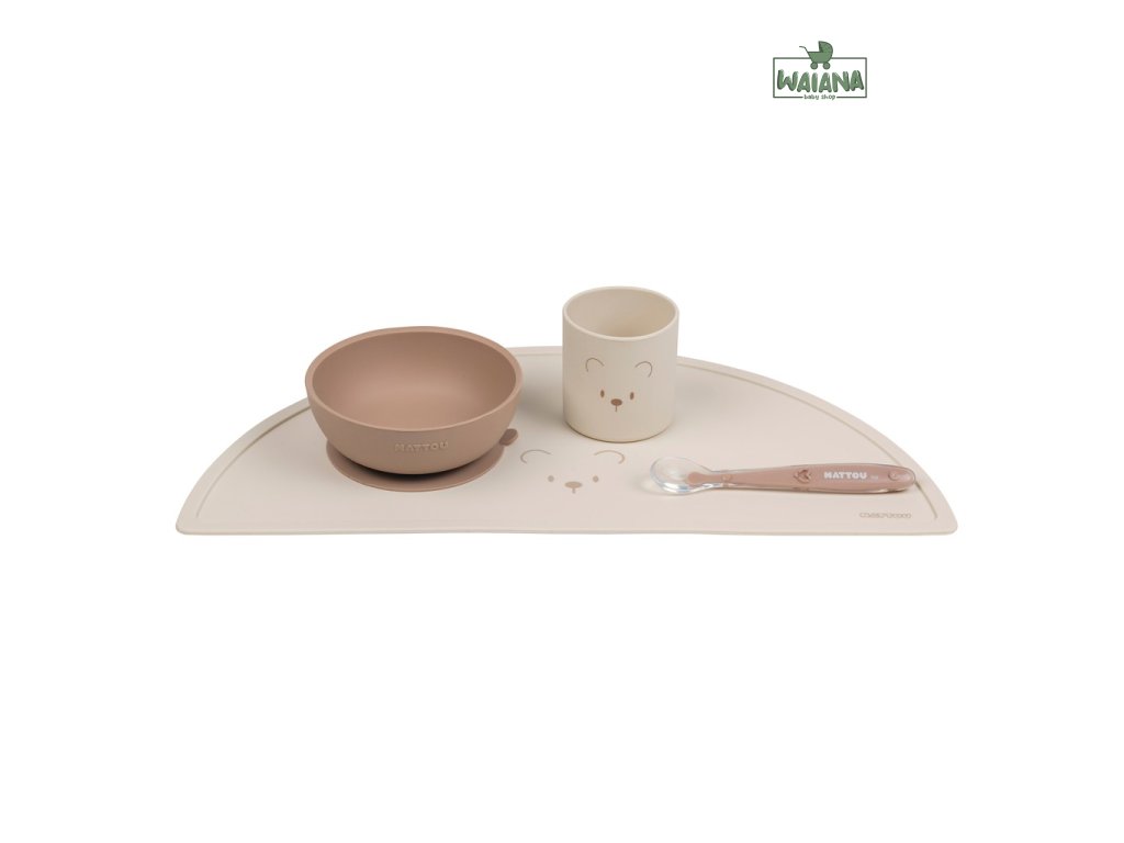 NATTOU Set jedálenský silikónový 4 ks, natural