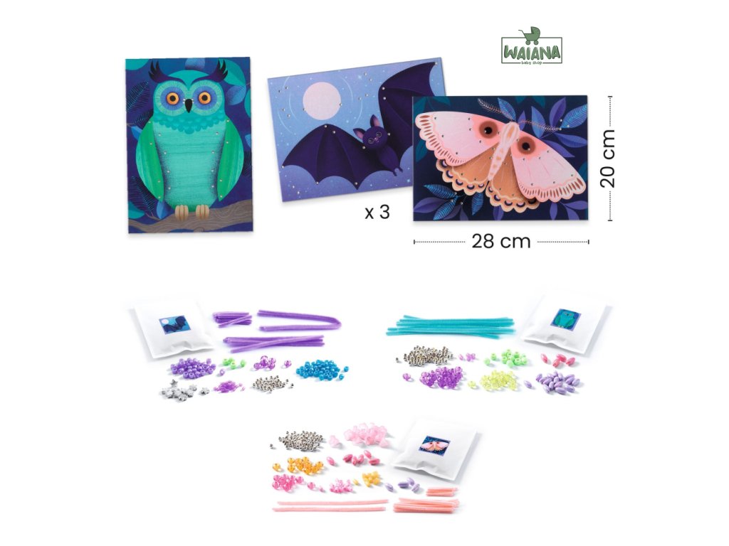 Navliekanie korálok na chlpaté drôtiky Rozsvieťte noc Tvorivé korálkovanie: Ozdobte ilustrácie na chlpatých drôtikoch Rozvíjajte kreativitu a jemnú motoriku svojho dieťaťa s touto zábavnou a interaktívnou aktivitou. Na navliekanie korálkov na chlpaté drôtiky je pripravená farebná inštruktážna brožúra, ktorá obsahuje jednoduché obrázkové návody. Po navlečení korálkov podľa návodu si dieťa môže vložiť vytvorené diela do ilustrovaných dosiek, ktoré sa zmenia na 3D efekt a krásne lesknú. Tento projekt je ideálny pre deti vo veku 3 až 6 rokov, ktoré sa učia nasledovať pokyny a zlepšiť svoje kreatívne zručnosti.Obsah:3 hrubé, ilustrované dosky s otvormi 420 guličiek, 45 chlpatých drôtikov, 1 návod