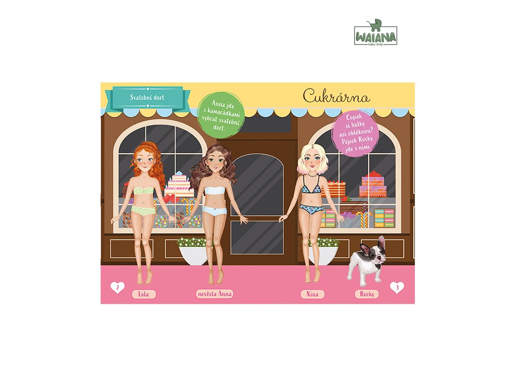 Nejlepší kamarádky Svatba Moje první oblečkováníRozprávková svadba – vyber šaty a doplnky podľa seba!Svadba je veľký deň a najlepšie kamarátky musia vyzerať dokonale! Pomôž neveste, družičkám a hosťom vybrať tie najkrajšie svadobné šaty a doplnky. Táto samolepková knižka obsahuje 16 krásnych farebných strán a viac ako 175 samolepiek s módnymi kúskami a dekoráciami, ktoré môžeš kombinovať podľa svojej fantázie. Obleč si postavičky na obrad, hostinu aj tanečný parket a vytvor si vlastnú rozprávkovú svadbu!
