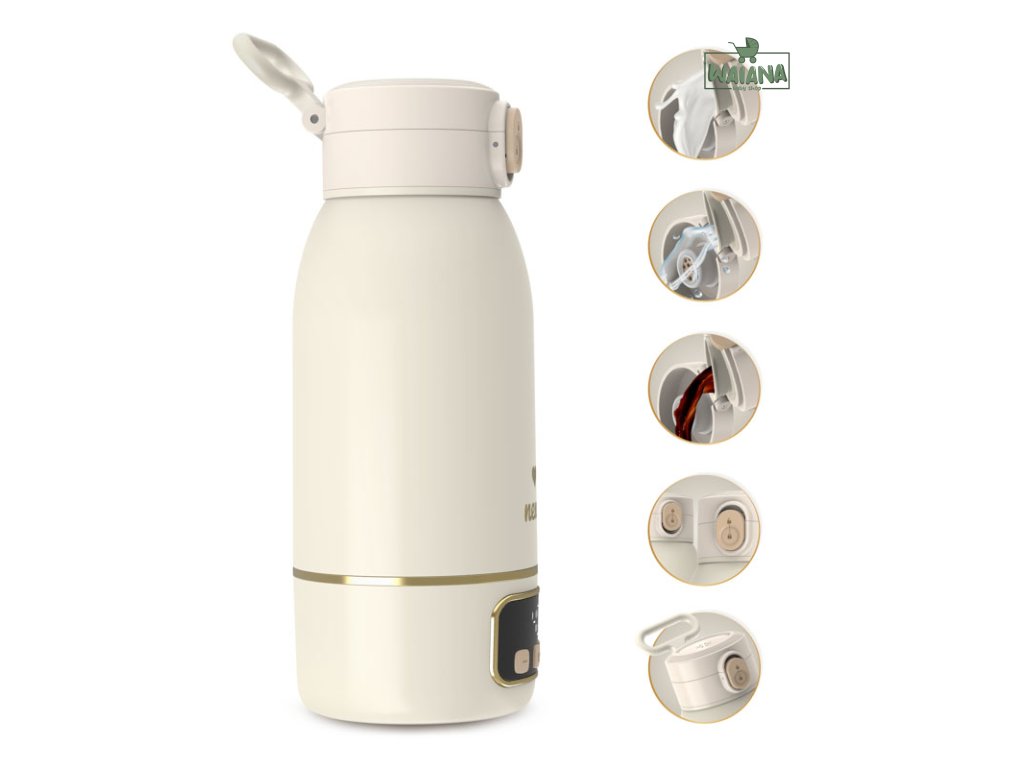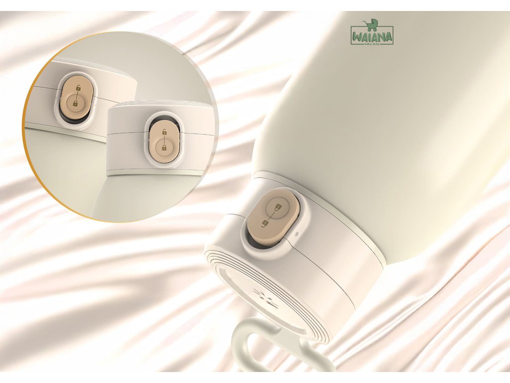 - Tesniaci uzáver: Cestovanie s dieťaťom už nebude problém. Ohrievač je vybavený neprepúšťajúcim uzáverom a zámkom na tlačidlo, ktorý zabezpečí, že sa nič nevyleje a zariadenie sa nezapne samovoľne.