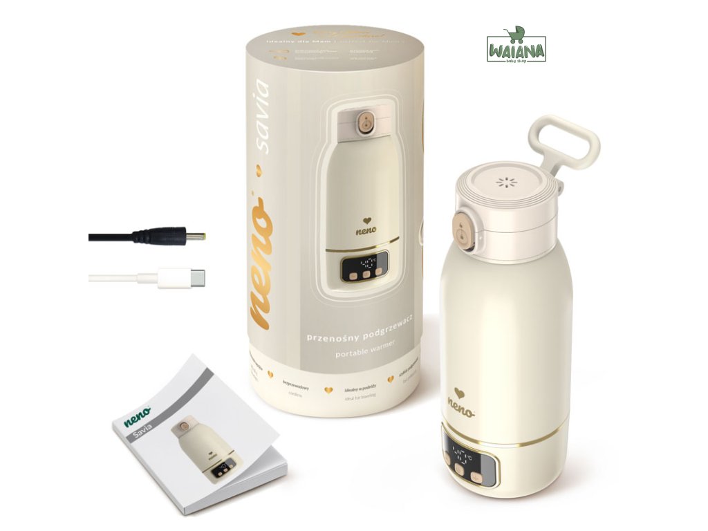 Neno Savia je bezdrôtový ohrievač, ktorý je ideálny na cestovanie, výlety aj každodenné použitie. Rýchlo ohrieva mlieko alebo vodu, udržiava ich teplotu a na jedno nabitie umožňuje ohriať tekutiny až osemkrát. Vďaka ľahkému a kompaktnému dizajnu, pohodlnej rukoväti a neprepúšťajúcemu uzáveru si ho môžete vziať kamkoľvek.