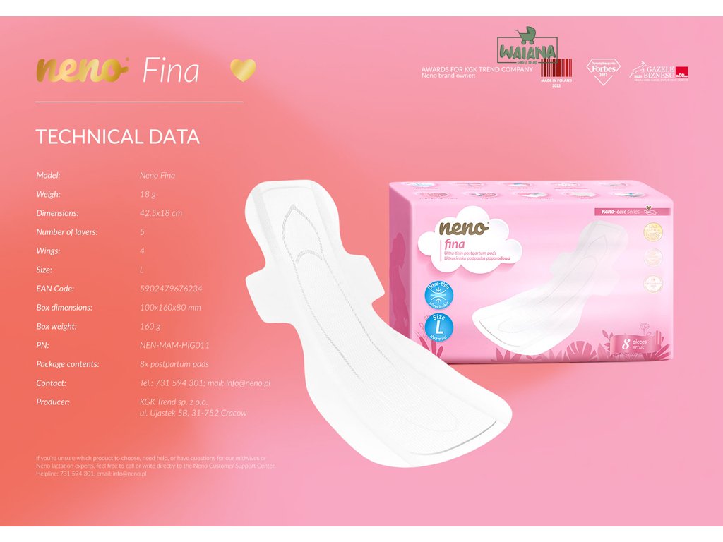 Popôrodná starostlivosť s dôrazom na pohodlie a spoľahlivosť. Vložky Neno Fina sú navrhnuté tak, aby vám poskytli diskrétnu ochranu a pocit sviežosti počas najnáročnejších dní po pôrode.