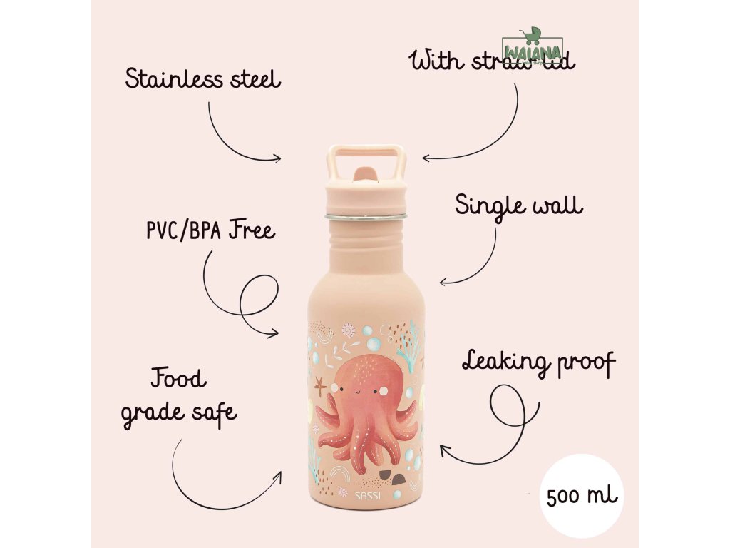 Navrhnutá tak, aby vydržala – detská fľaša SASSI z nehrdzavejúcej ocele s objemom 500 ml je dokonalou kombináciou odolnosti, bezpečnosti a štýlu, vytvorená tak, aby sprevádzala vašich najmenších na všetkých ich dobrodružstvách.